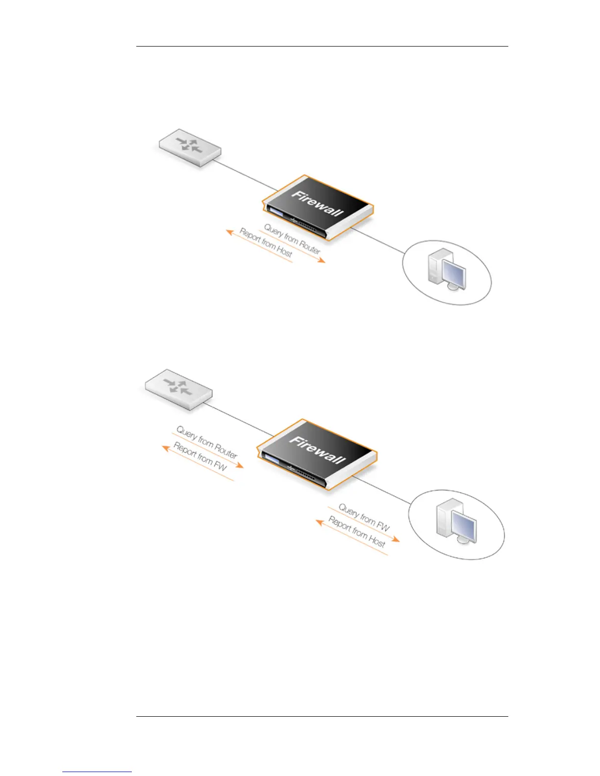 In Snoop Mode, the NetDefend Firewall will act transparently between the hosts and another IGMP