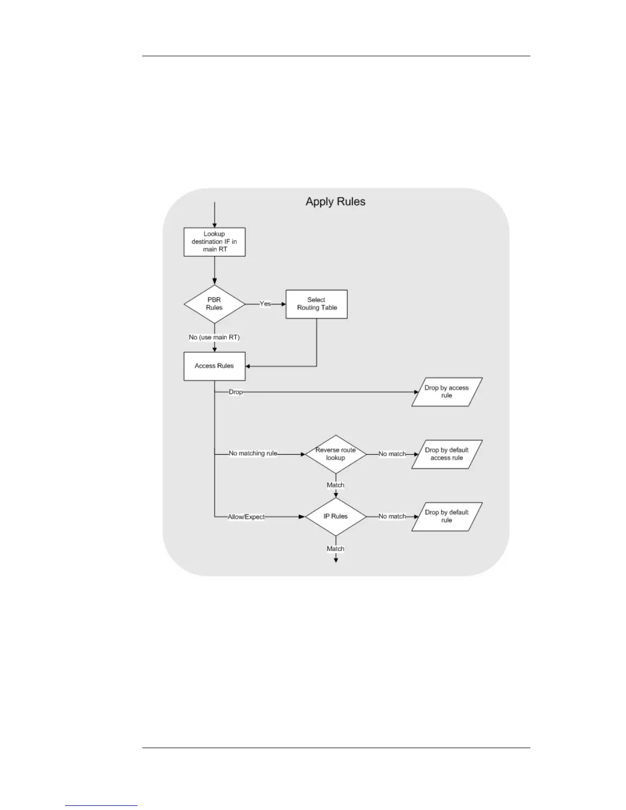 The figure below presents the detailed logic of the Apply Rules function in Figure 1.2, “Packet