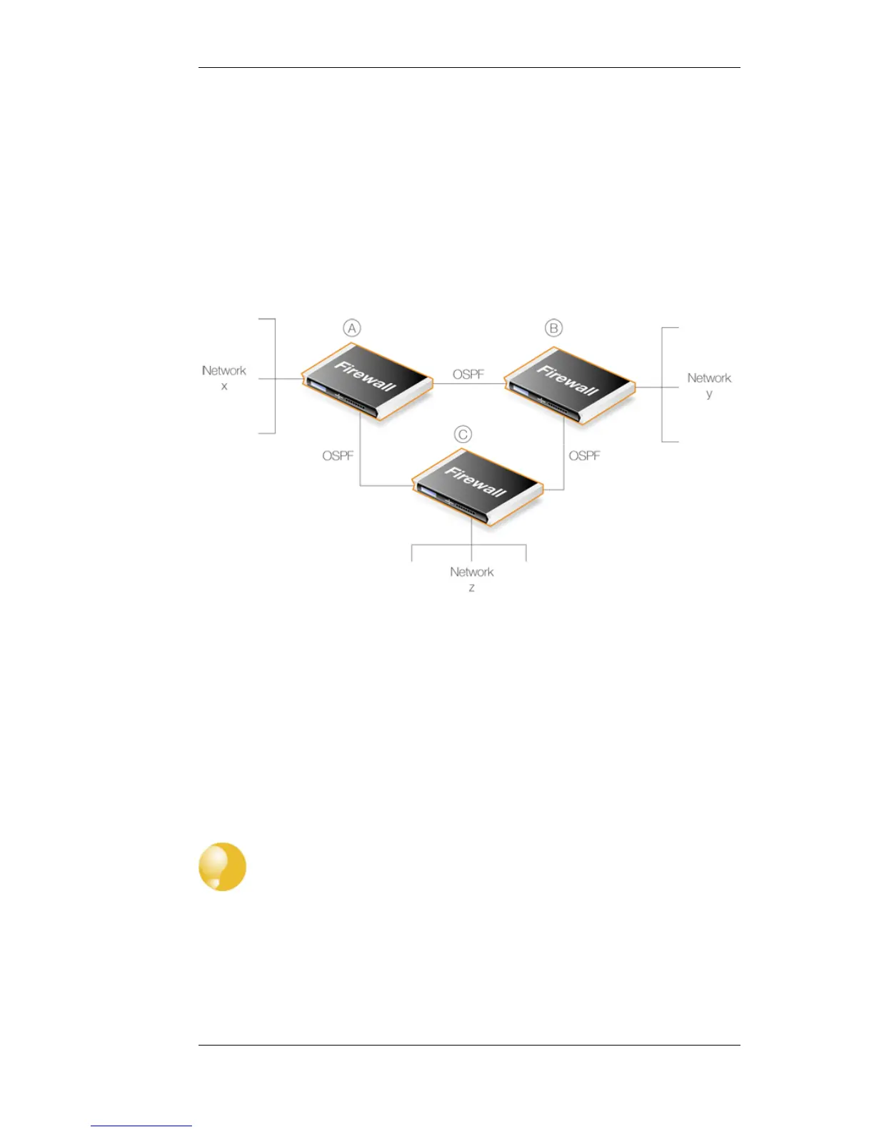 situation where all three firewalls are aware, through OSPF, of what networks are attached to the