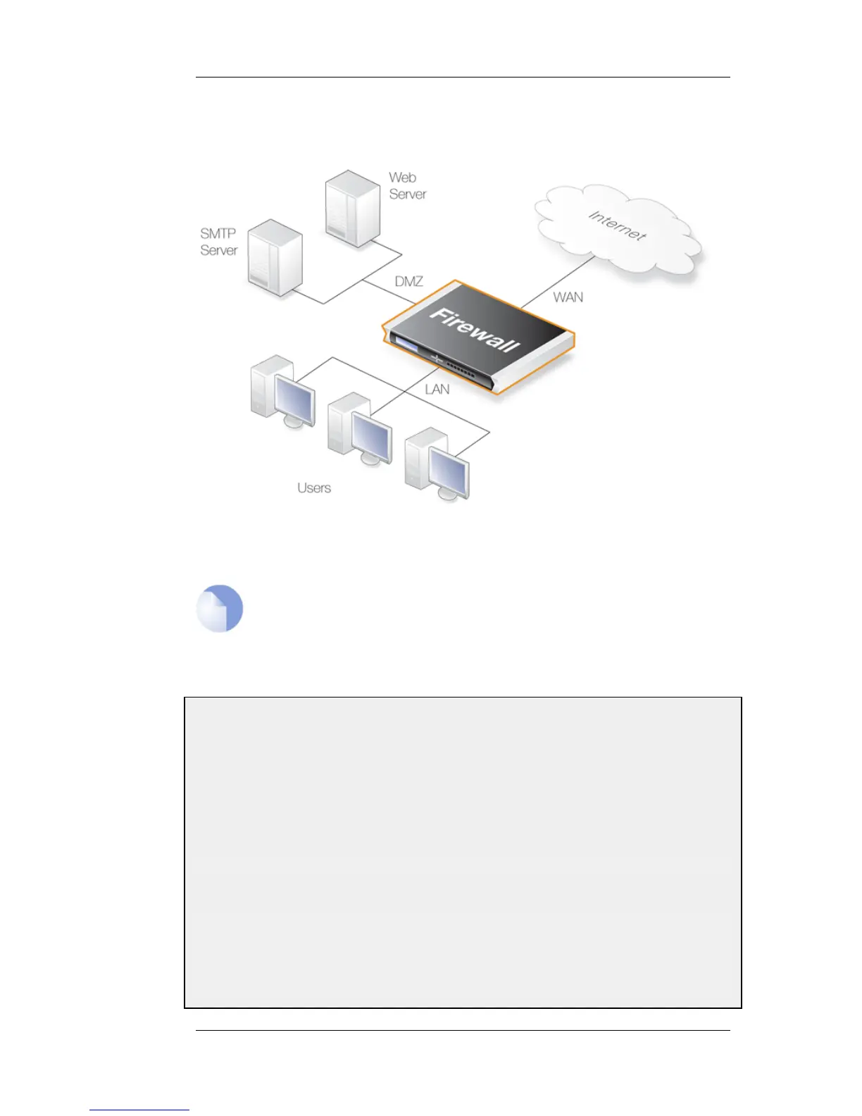 The illustration below shows a typical network arrangement with a NetDefend Firewall mediating