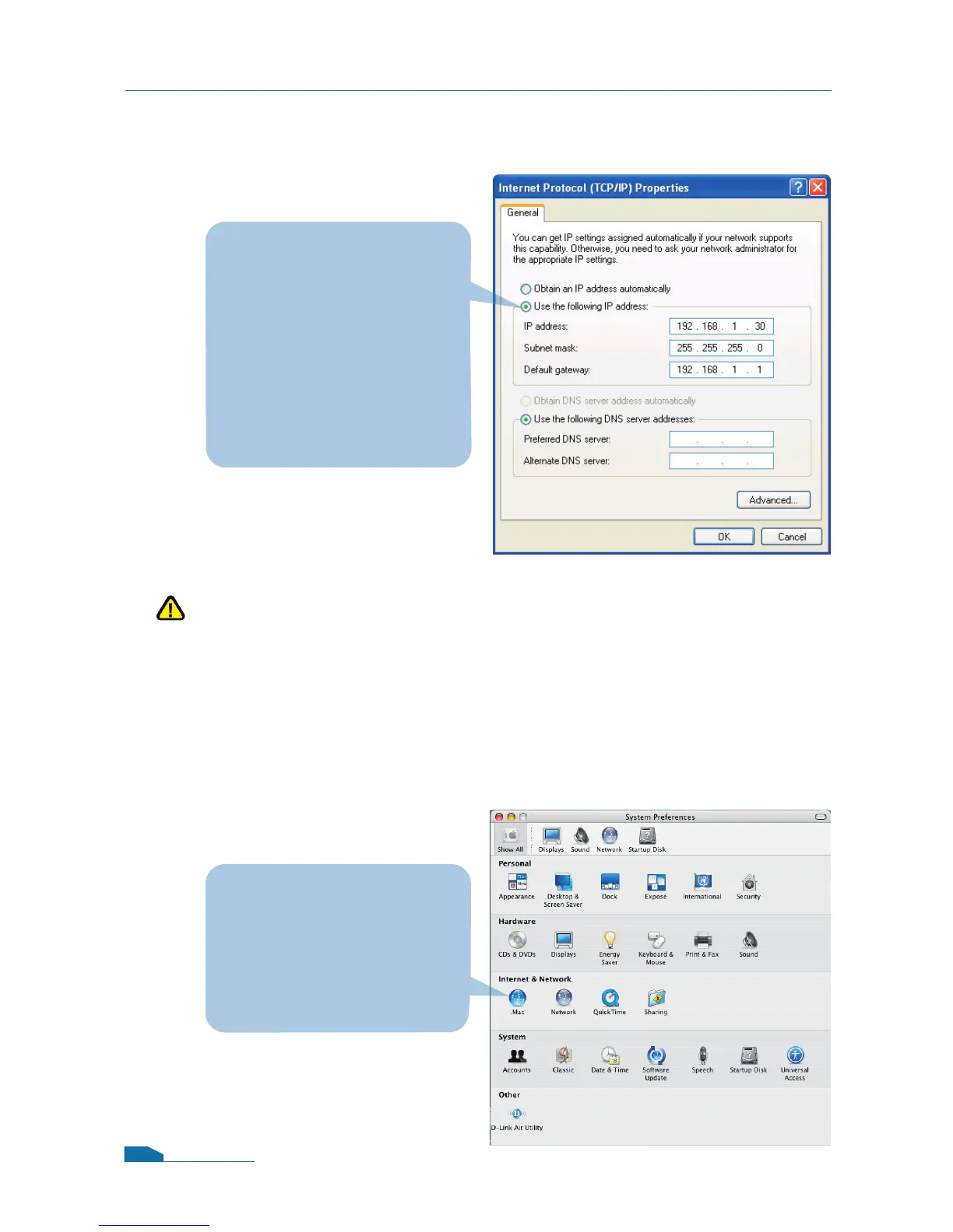 and Default gateway to