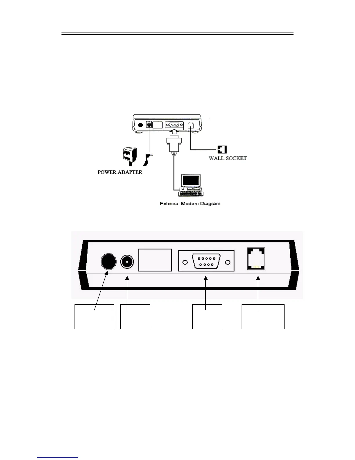2.Plug the telephone cord supplied into the socket on the back of the modem marked LINE.