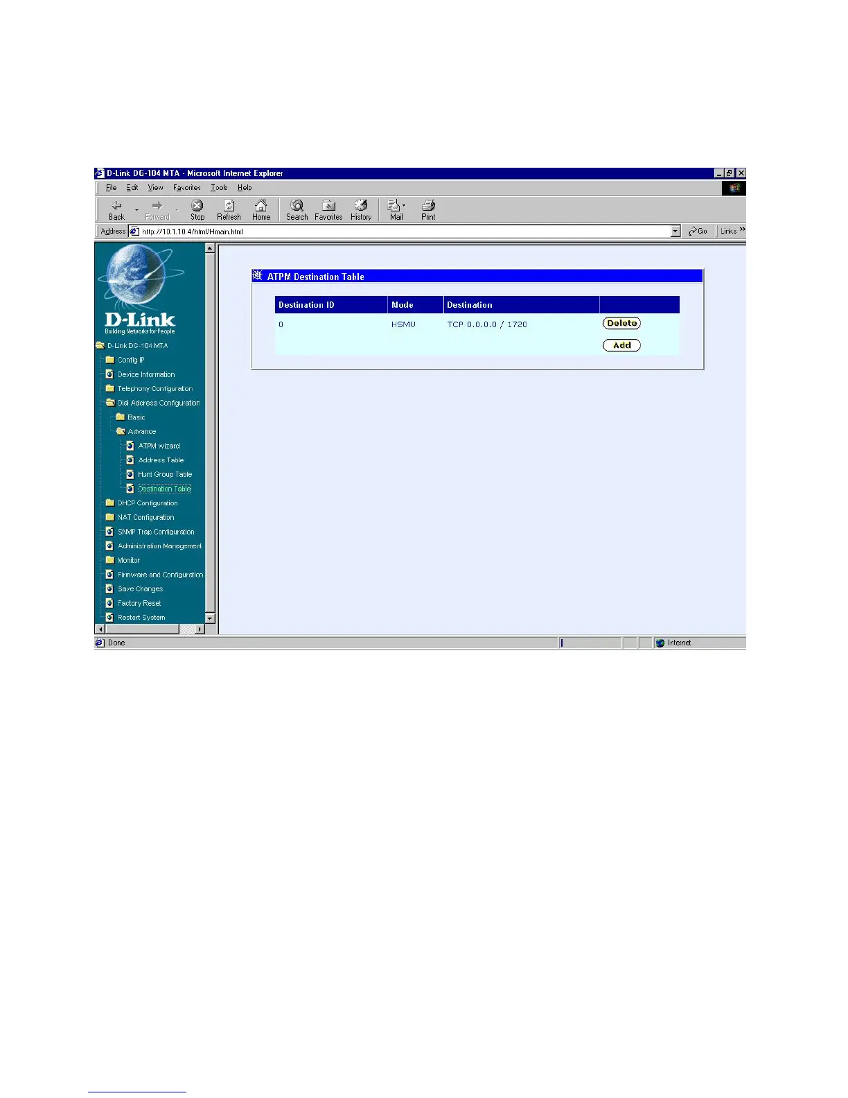 D-Link DG-104SH - Atpm Destination Table