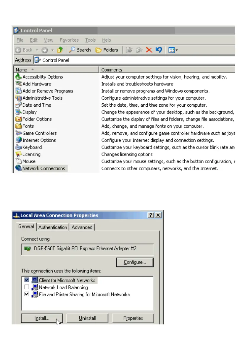 Right-click Local Area Connection for the D-Link DGE-560T and select