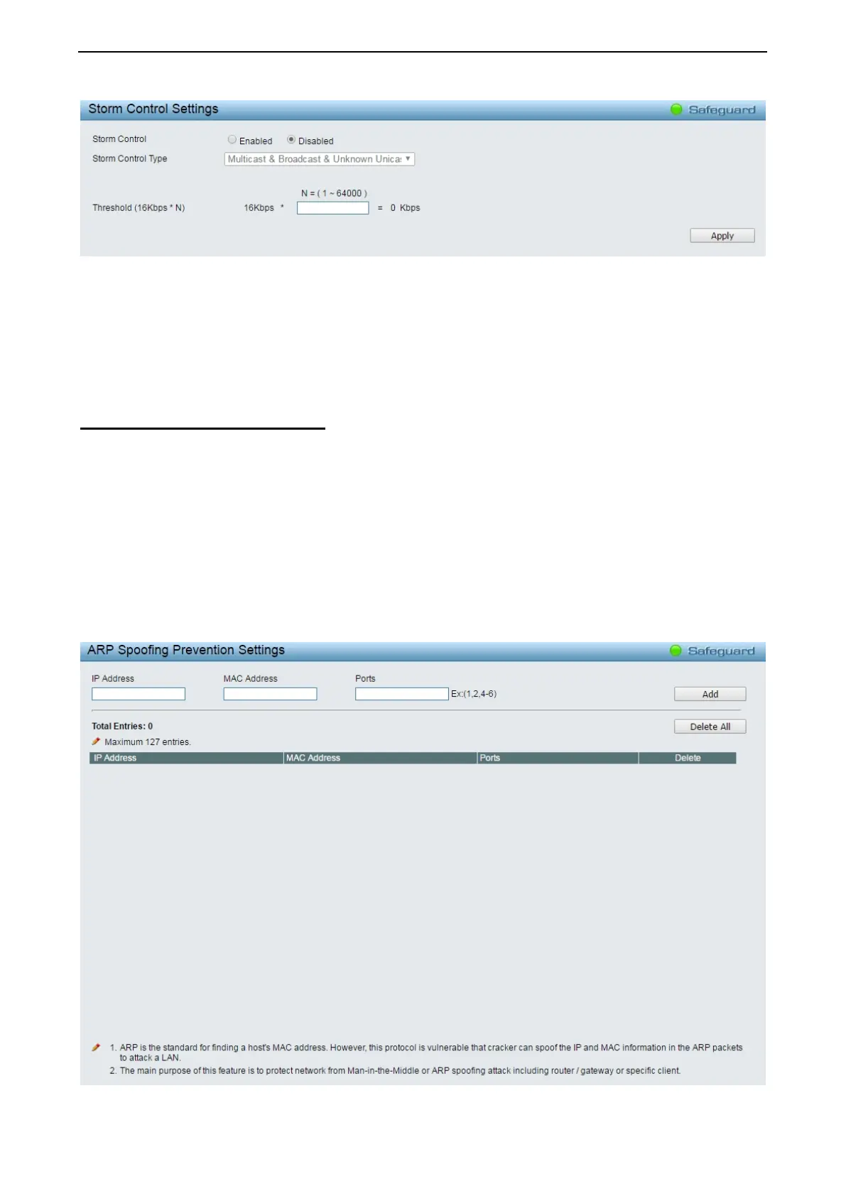 Figure 4.104 – Security > ARP Spoofing Prevention