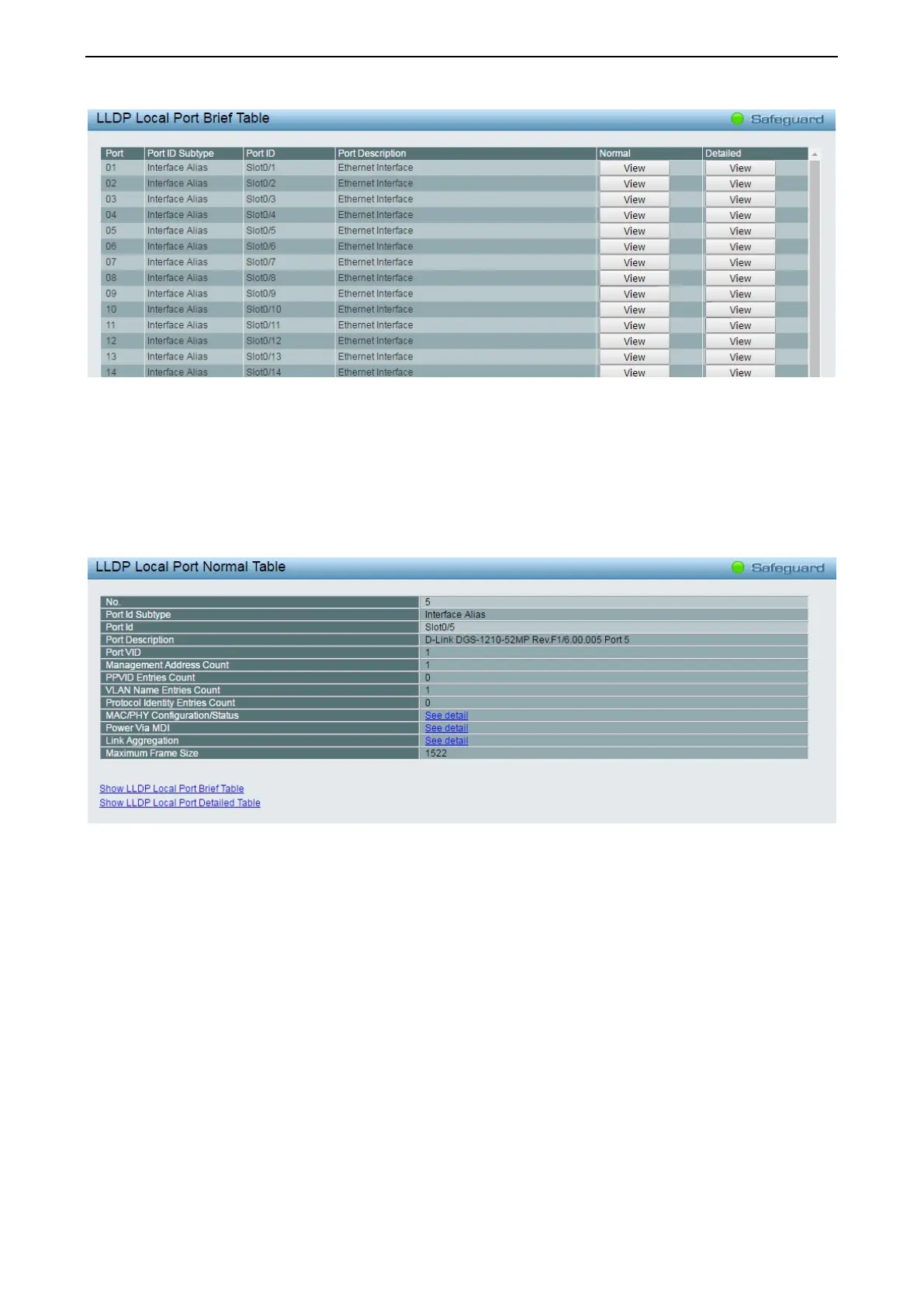 Figure 4.80 – L2 Functions > LLDP > LLDP Local Port Normal Table