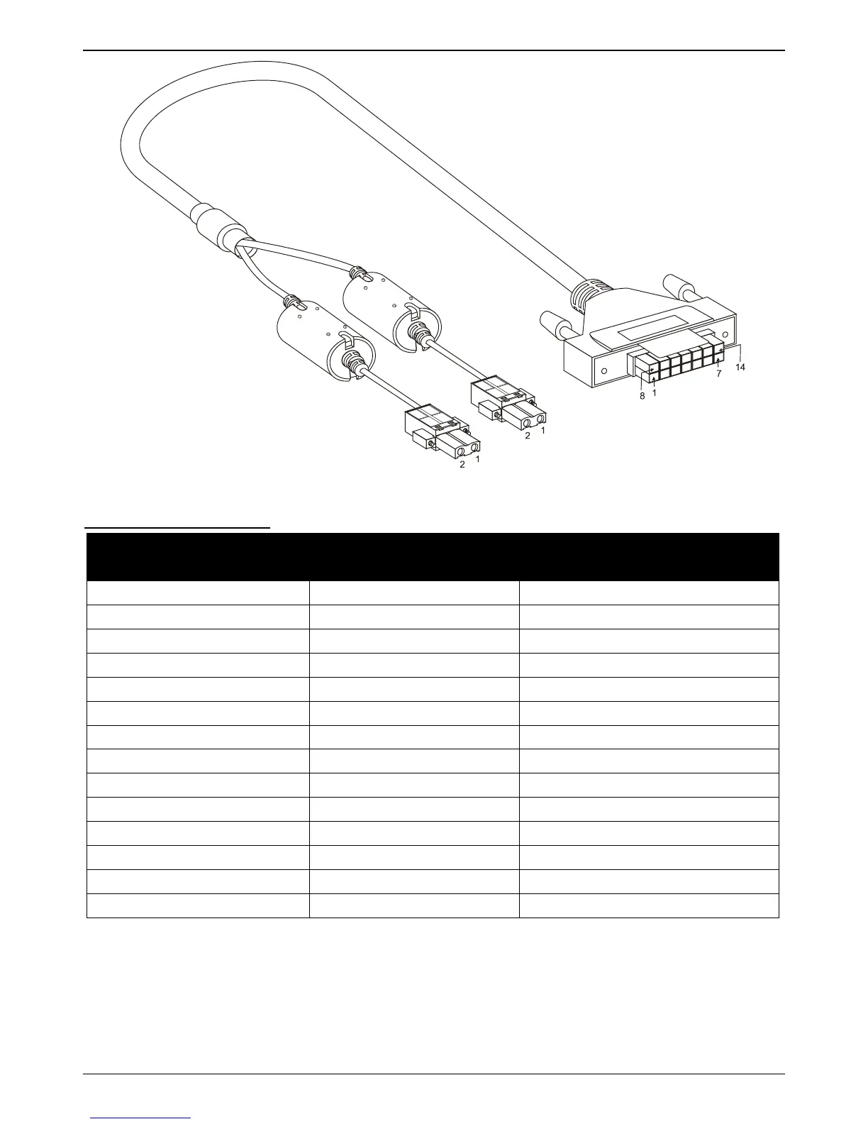 RPS 14-pin to two 2-pin DC Power Cable Pin Assignments