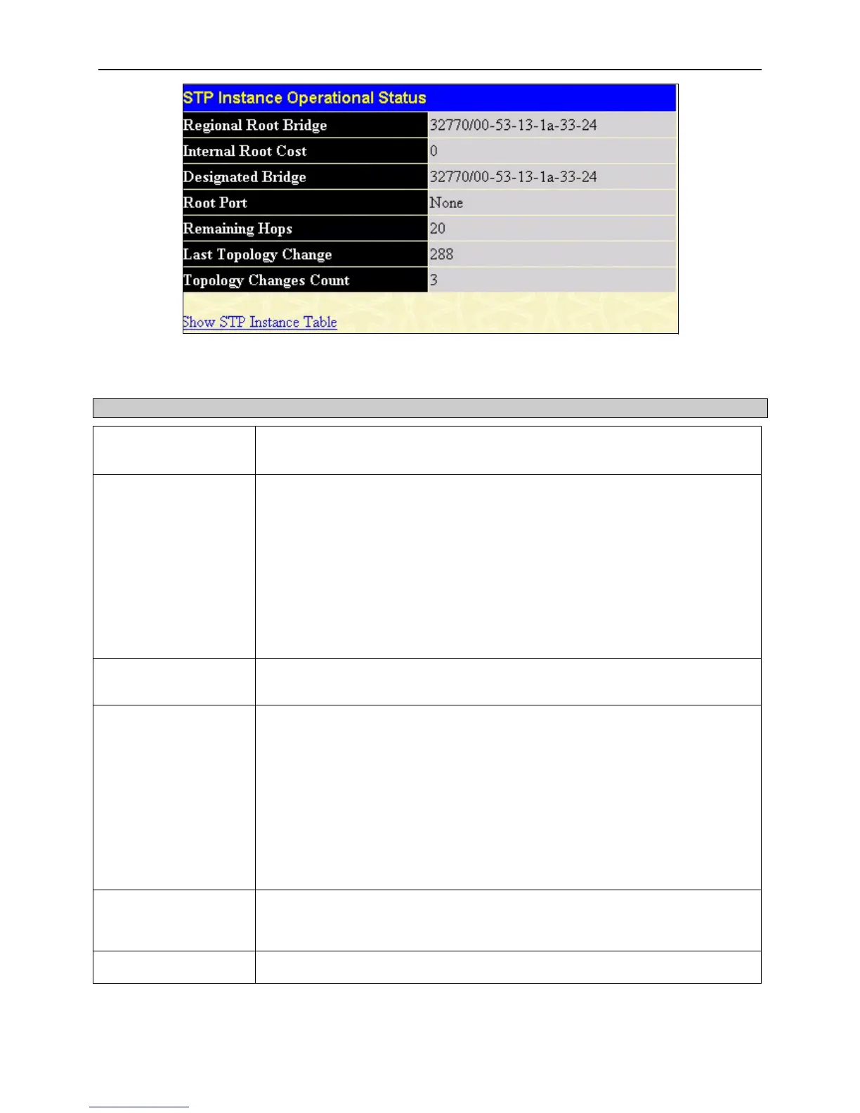 The following parameters may be viewed in the STP Instance Operational Status windows: