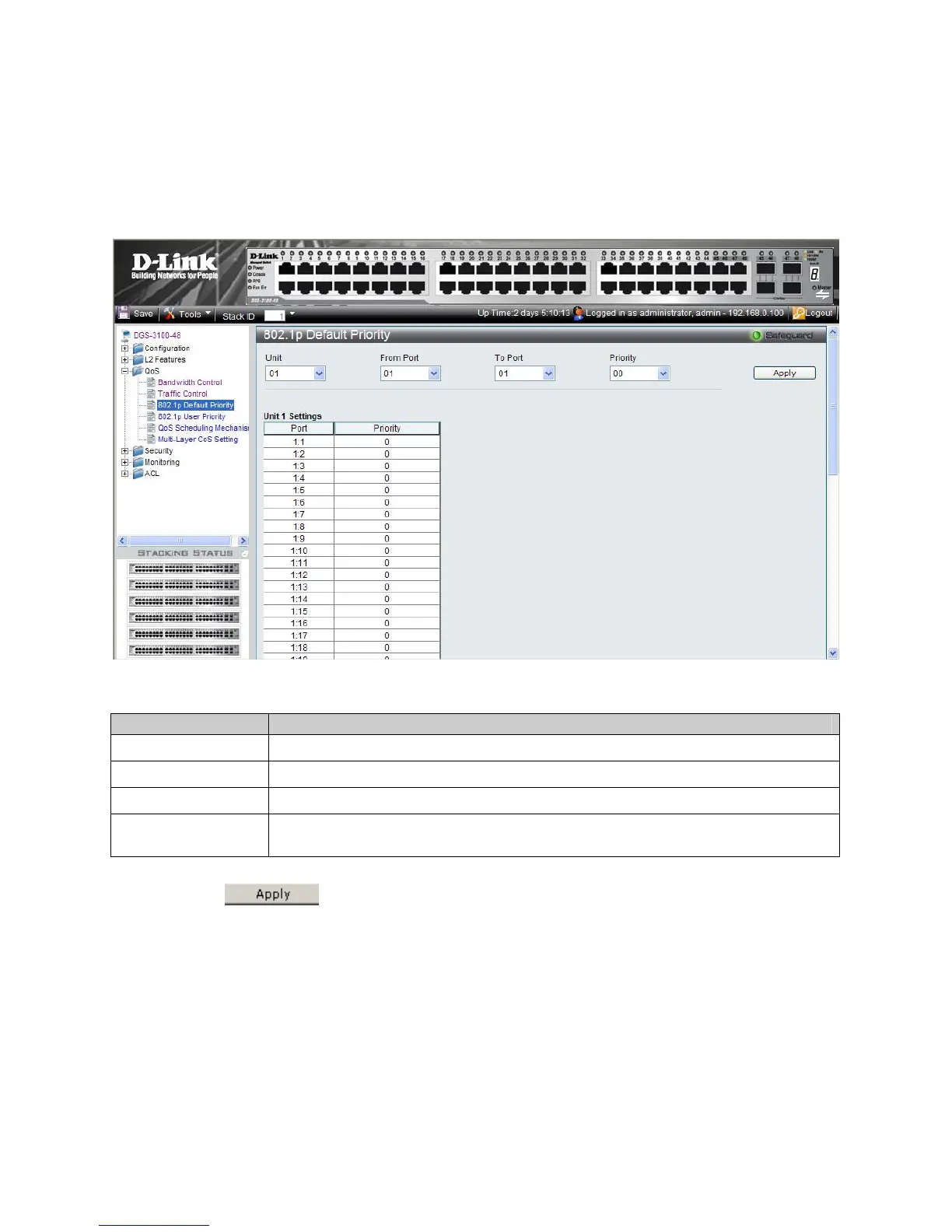 1. Click Qos > 802.1p Default Priority. The 802.1P Default Priority Page opens: