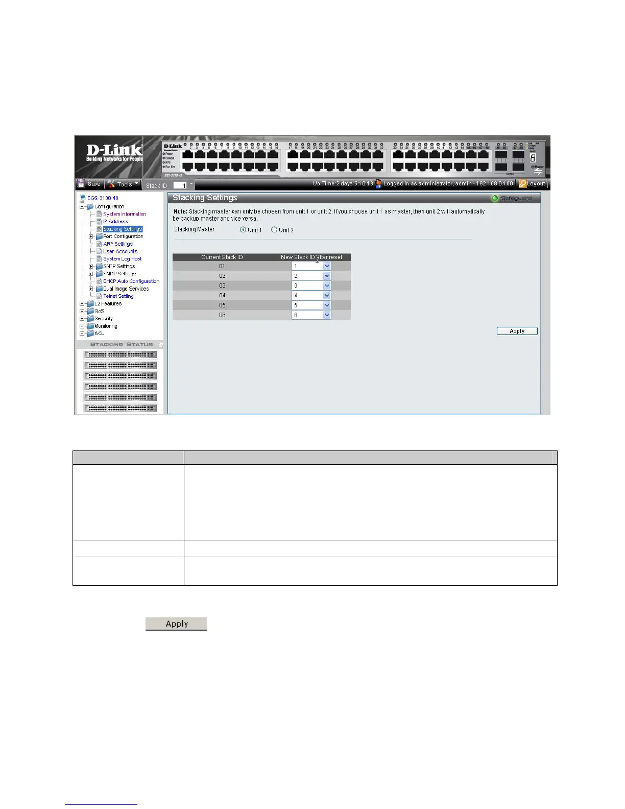 Figure 0-4. Stacking Settings Page