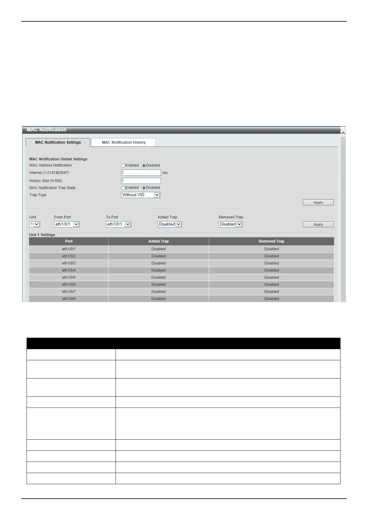 MAC Notification Trap State Select to enable or disable the MAC notification trap state.