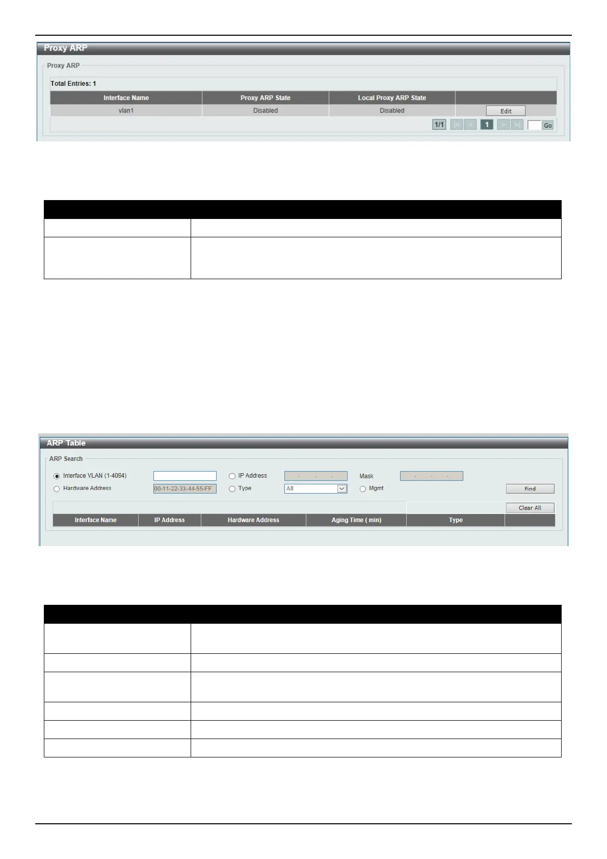This window is used to display and configure the ARP table settings.