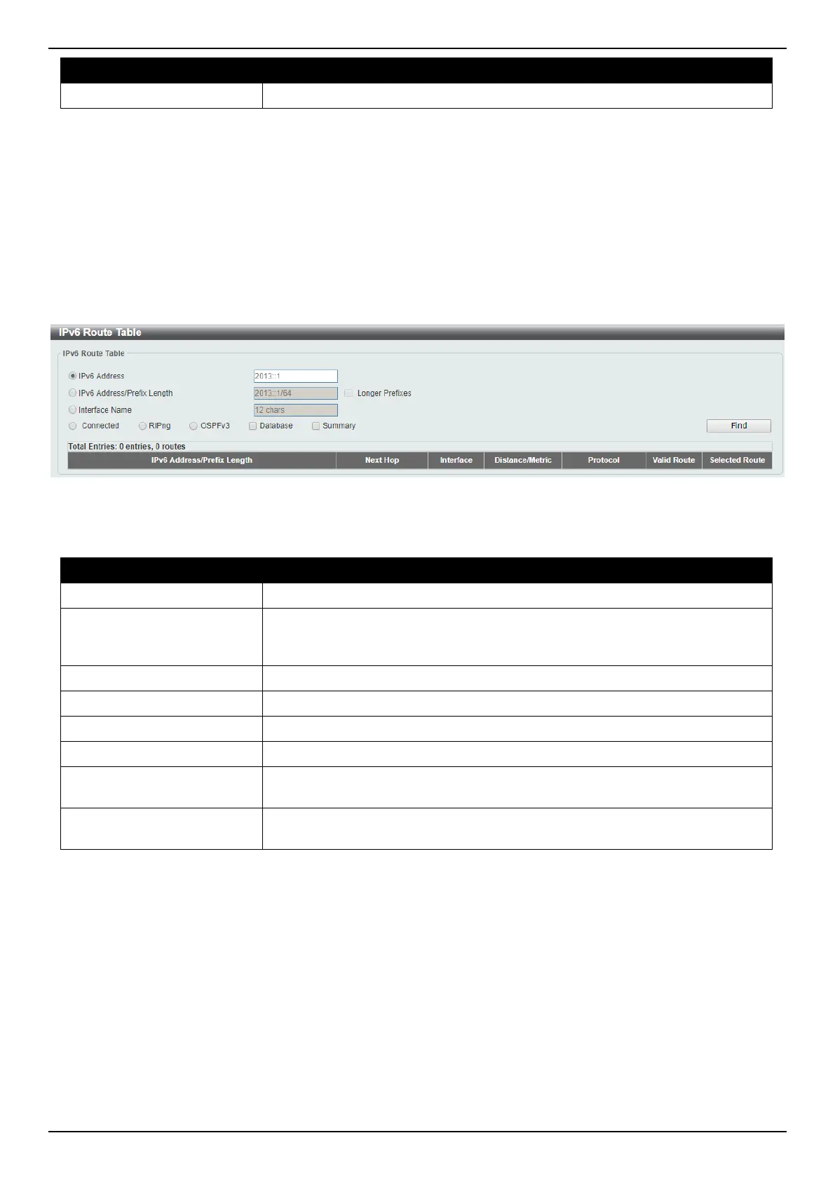 To view the following window, click L3 Features > IPv6 Route Table, as shown below: