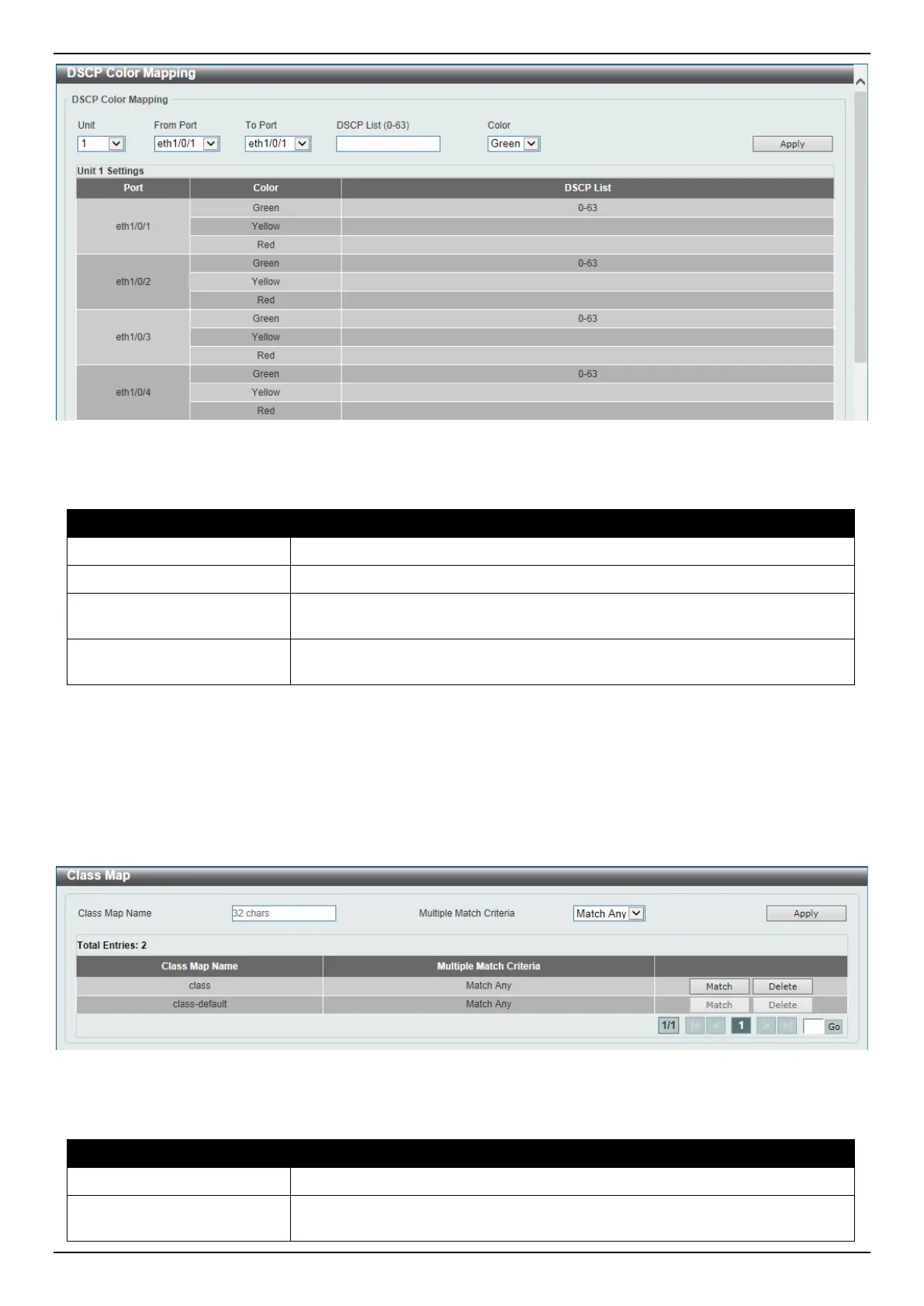 DSCP List Enter the DSCP list value here that will be mapped to a color. This value must