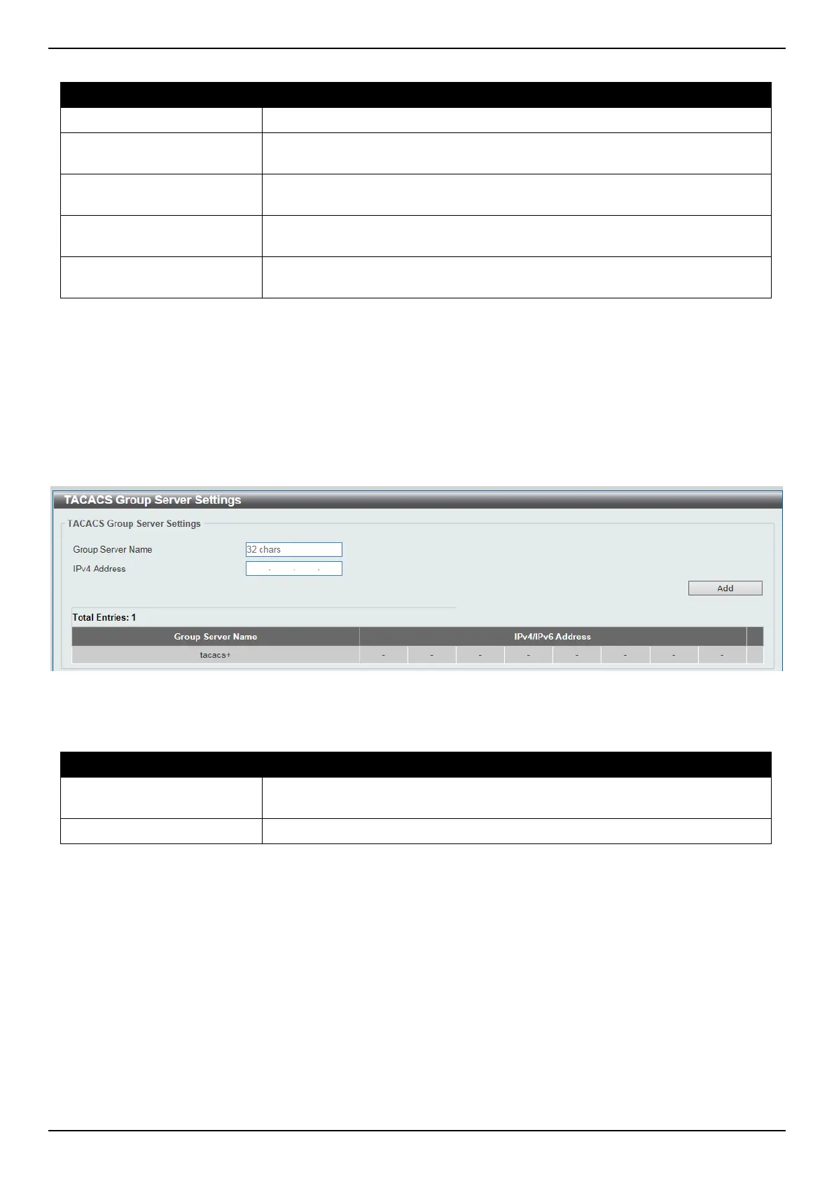 IPv4 TACACS Server IP Enter the group server IPv4 address here.