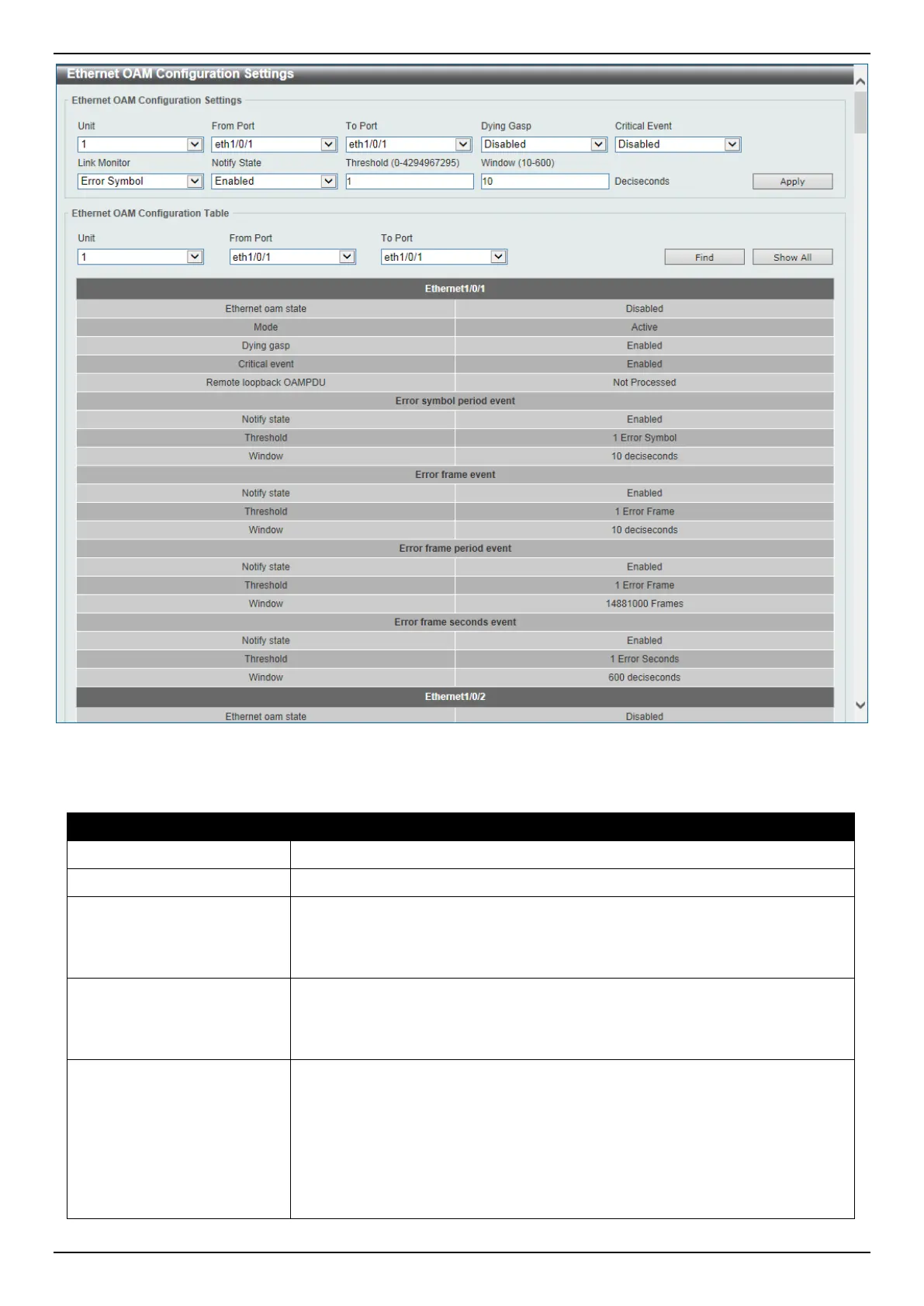 • Error Symbol - This feature is used to enable notifying the Ethernet OAM