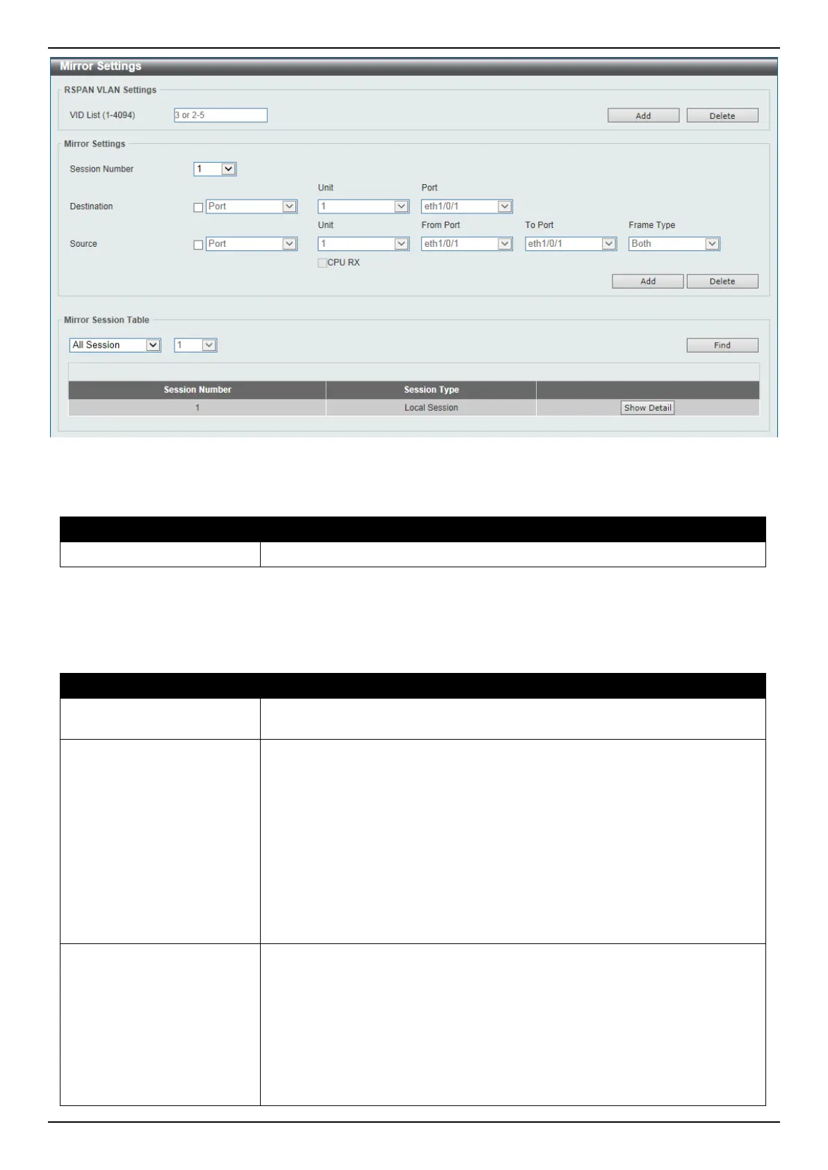 The fields that can be configured for RSPAN VLAN Settings are described below:
