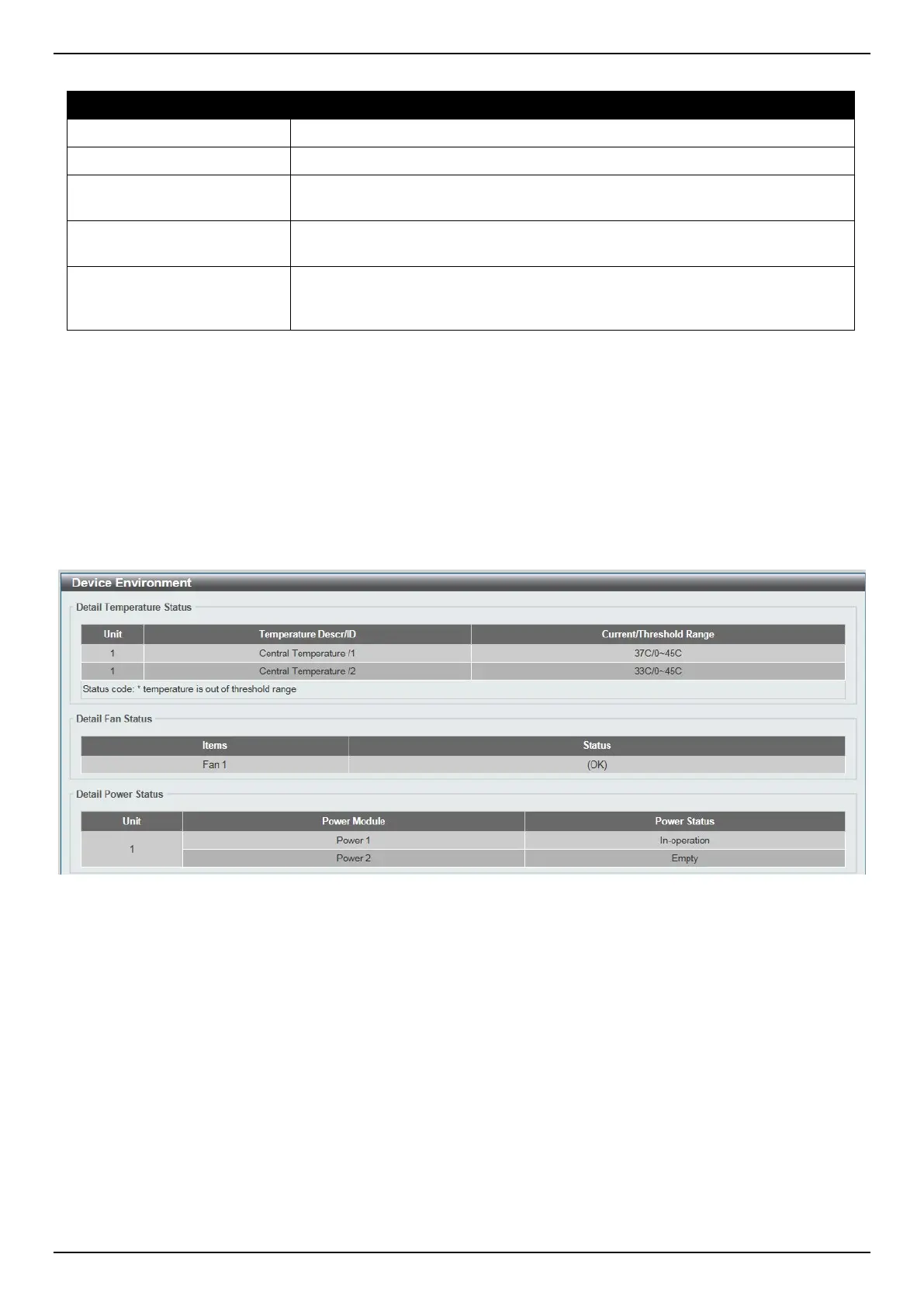 To view the following window, click Monitoring > Device Environment, as shown below: