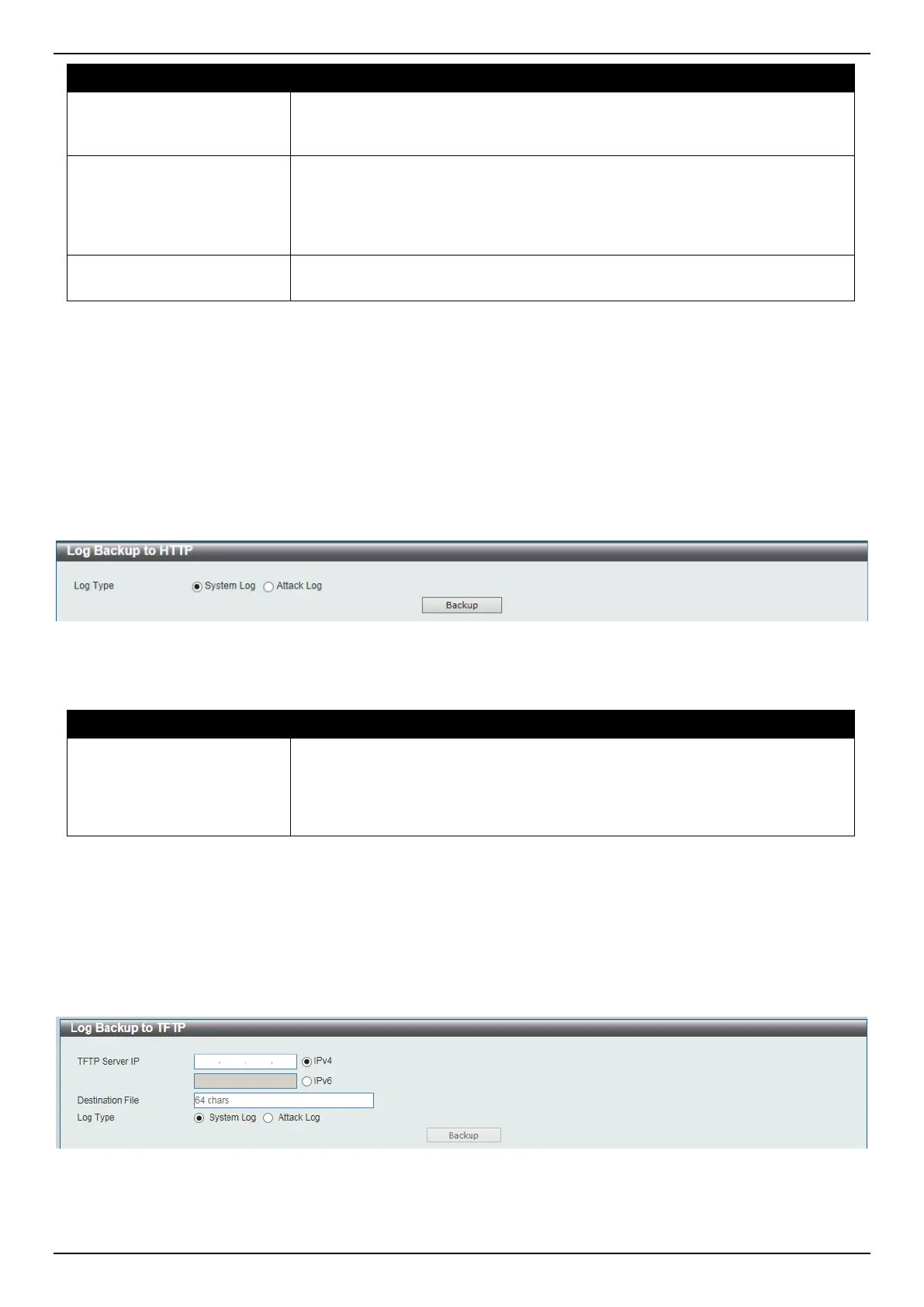 This window is used to initiate a system log backup to a local PC using HTTP.