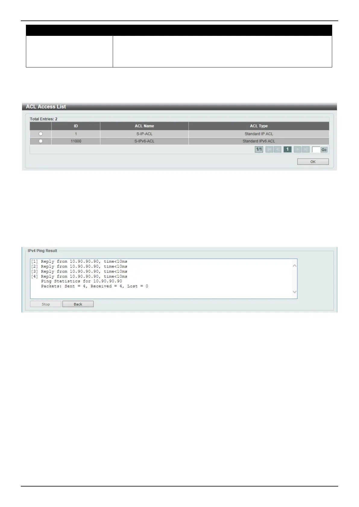 Click the Back button to return to the IPv4 Ping section.