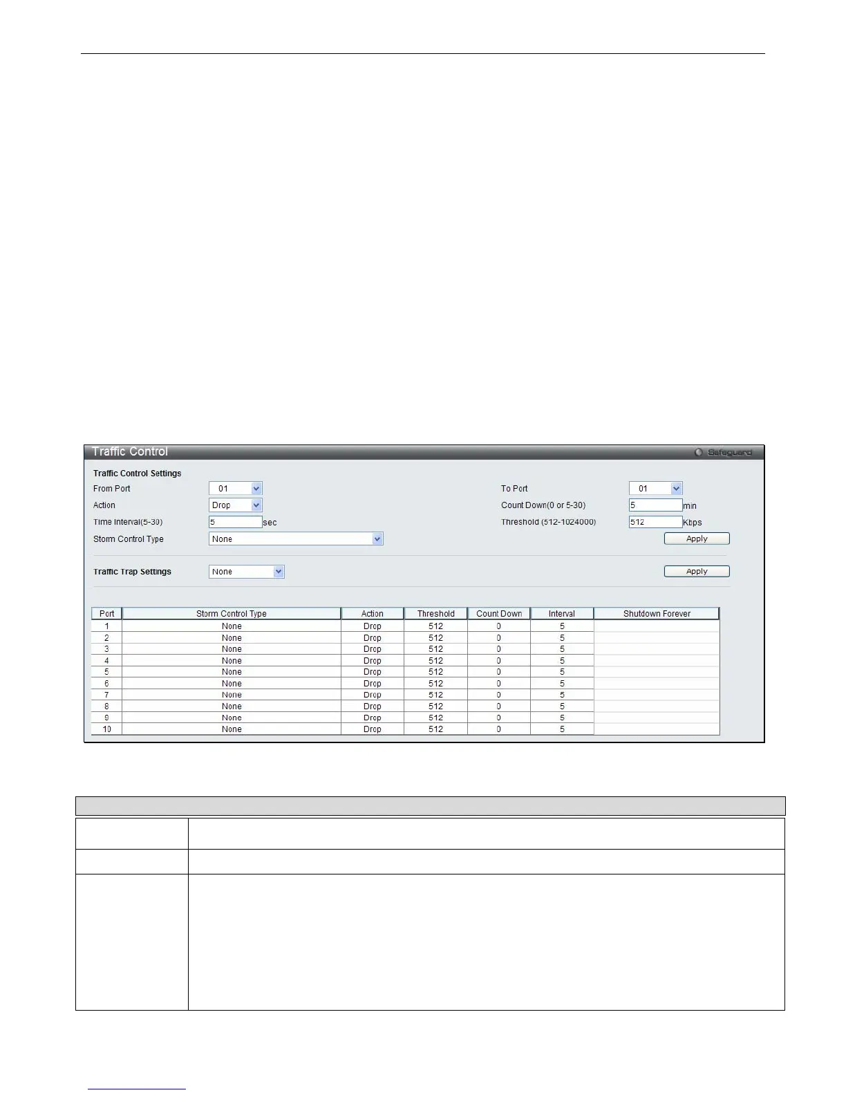 If a Time Interval parameter times-out for a port configured for traffic control and a packet storm continues, that port will be