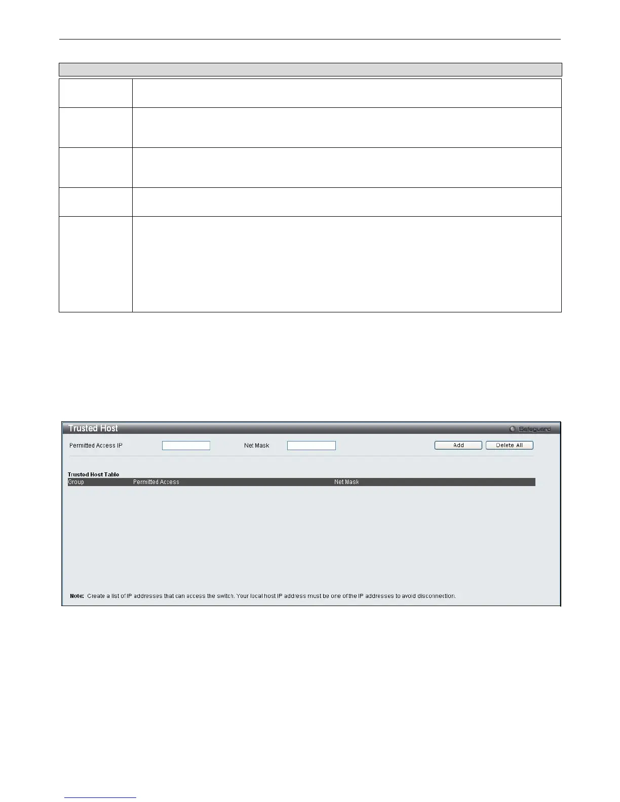 one or more trusted hosts are enabled, the Switch will immediately accept remote instructions from only the specified IP address