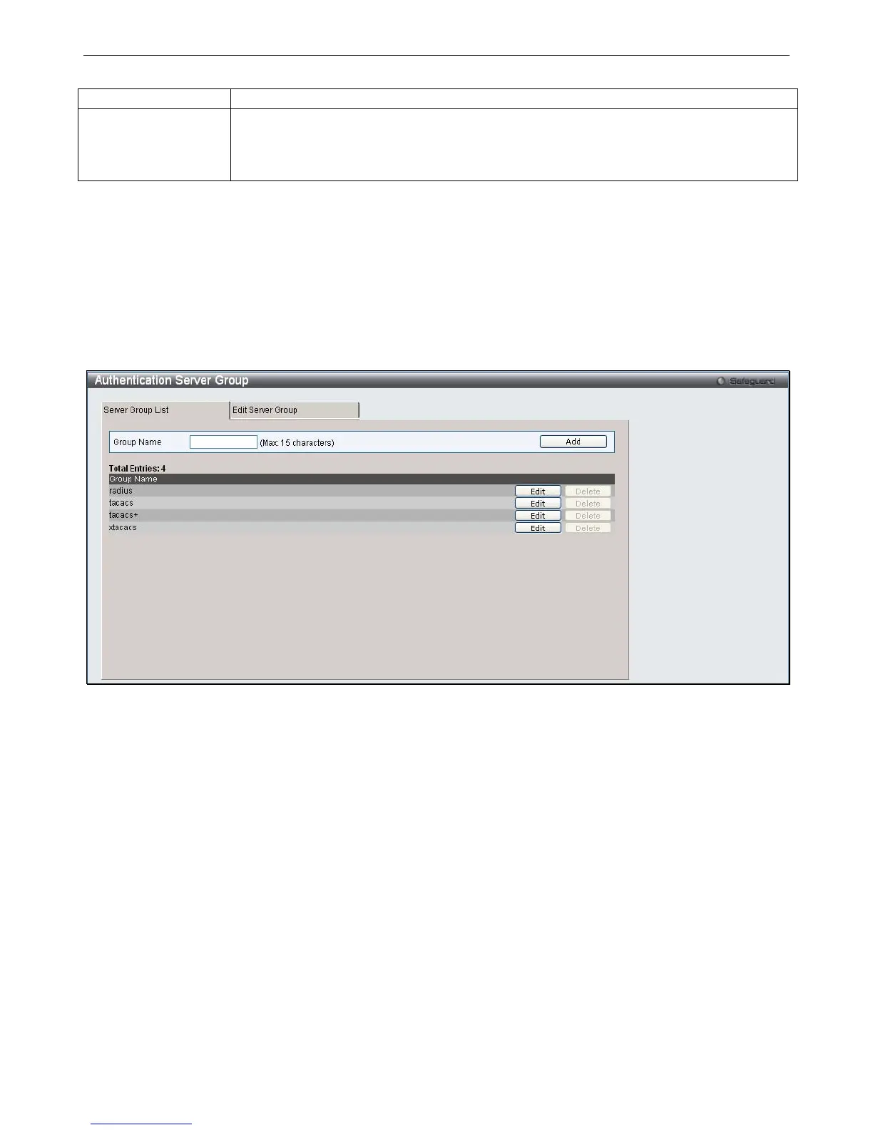 To view the following window, click Security > Access Authentication Control > Authentication Server Group: