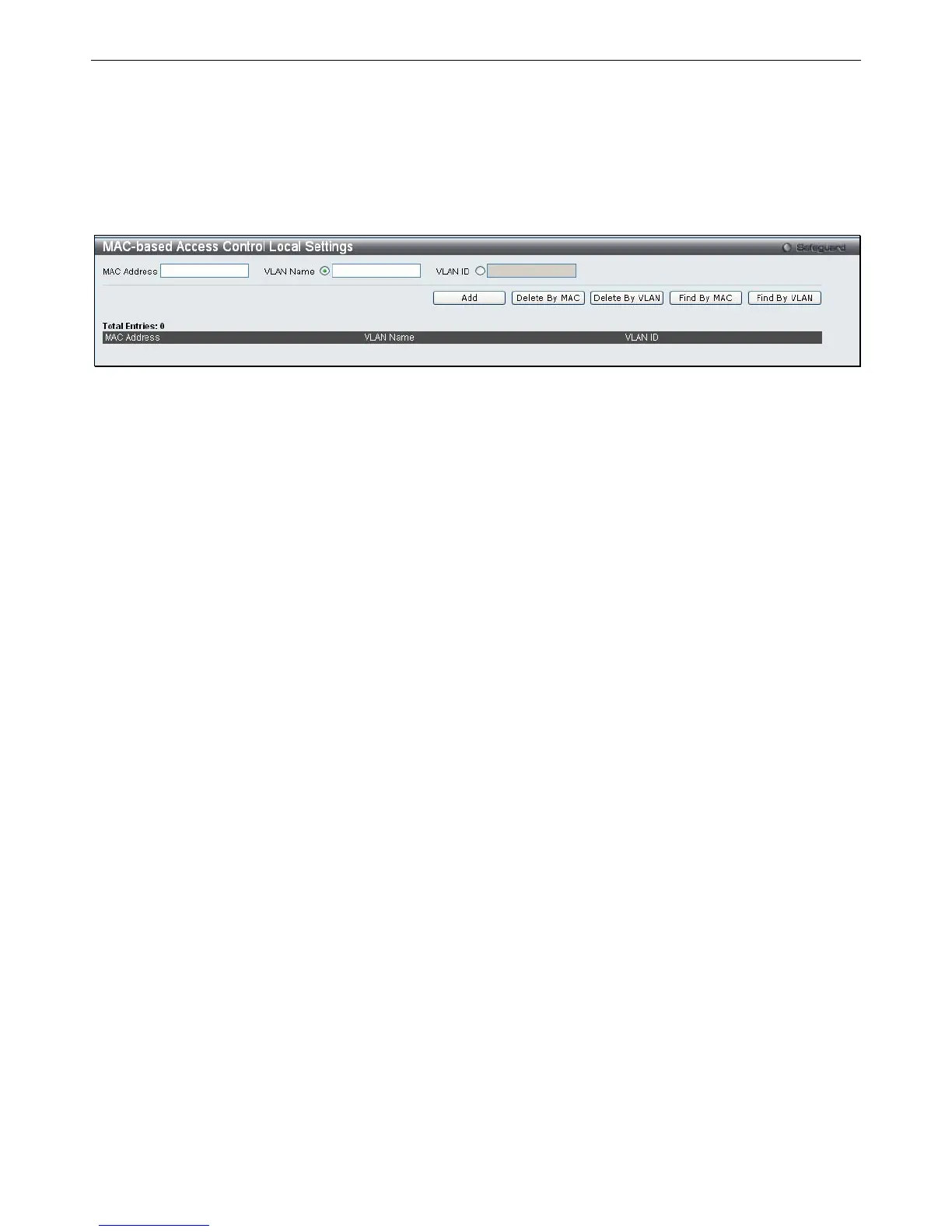 VLAN Name, enter its parameters into the appropriate fields and click Delete By VLAN. To search for a specific MAC Address,
