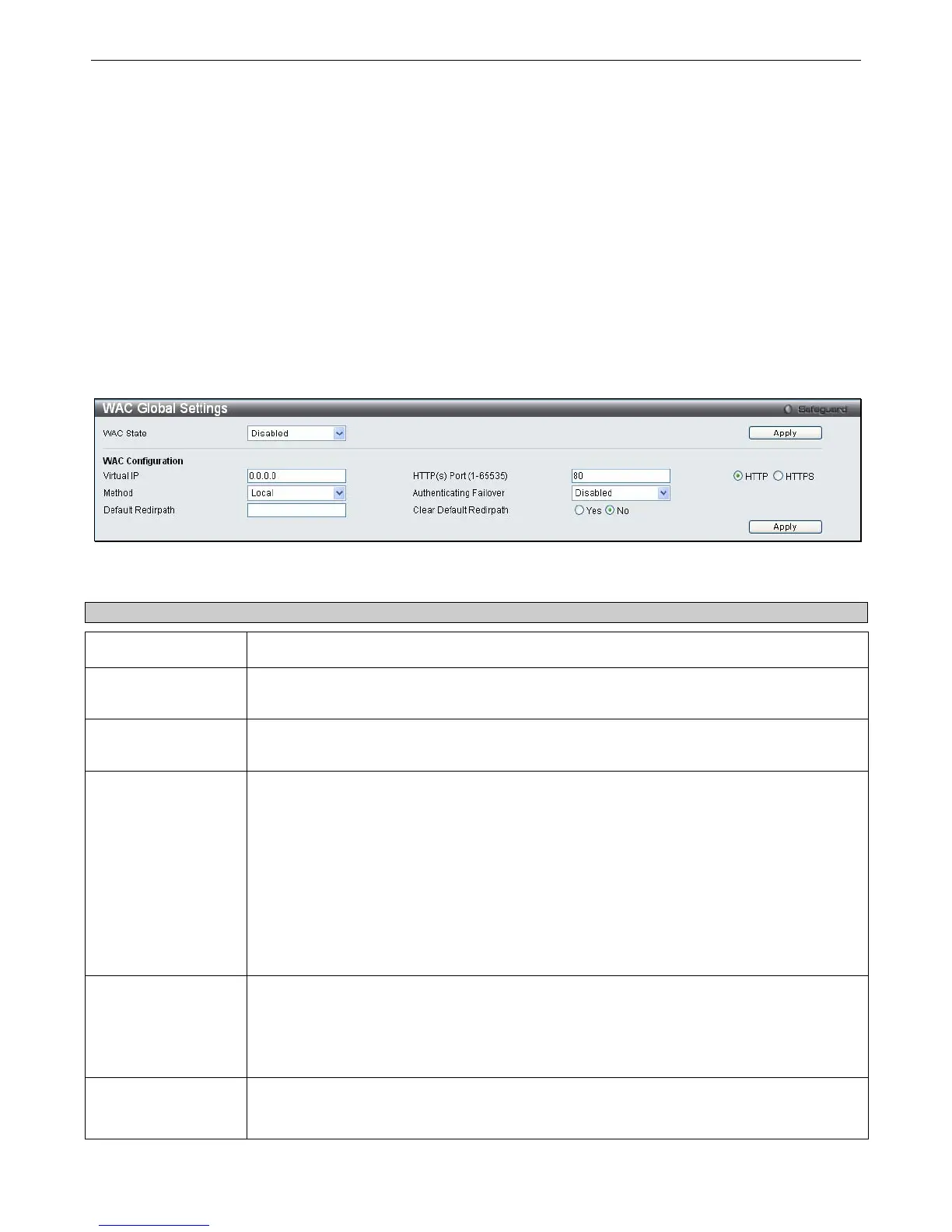Toggle between Enabled and Disabled. This is used to configure WAC authentication