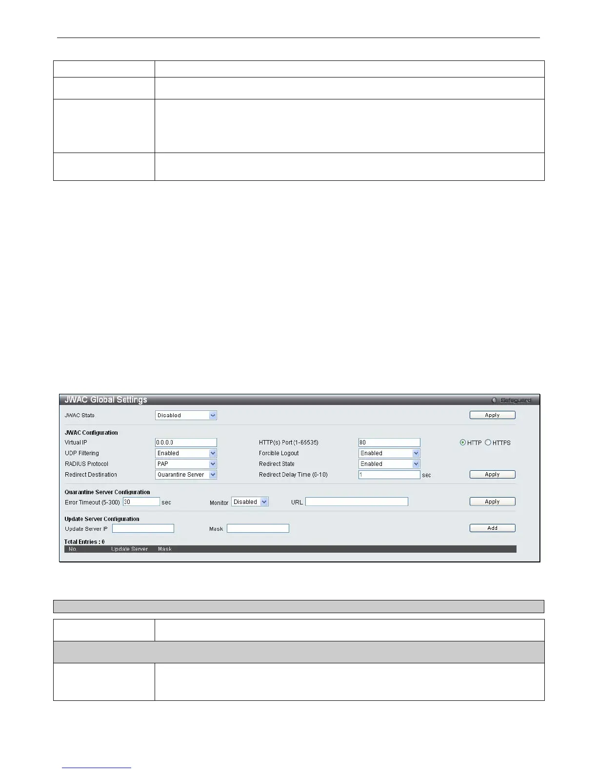 Use this drop-down menu to either enable or disable JWAC on the Switch.