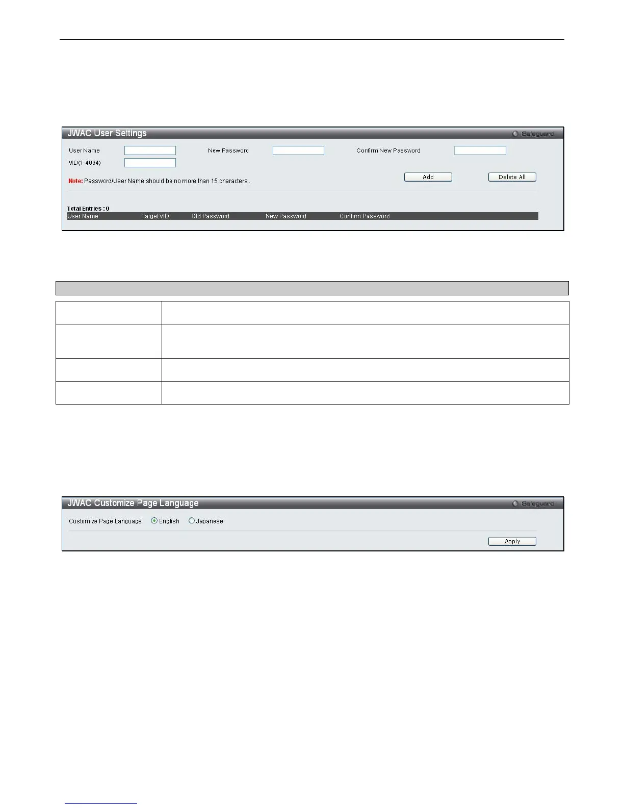 To view the following window, click Security > JWAC > JWAC Customize Page Language: