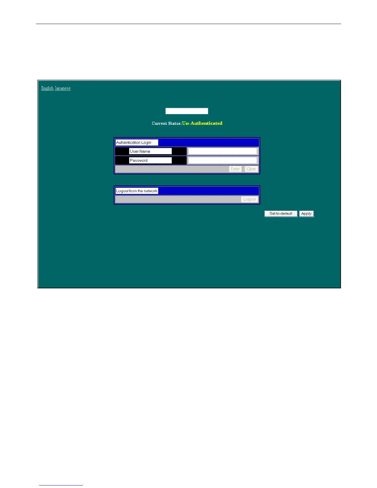 Authentication in the first field and then click the Apply button. Next, enter a User Name and a Password and then click the Enter