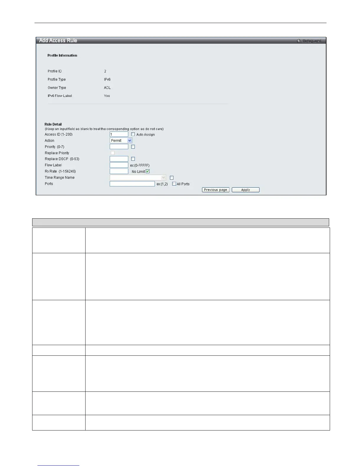 To set the Access Rule for IPv6, adjust the following parameters and click Apply.