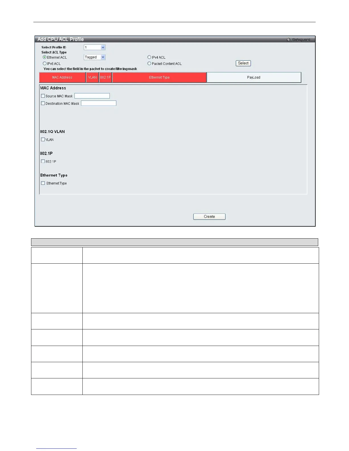 Figure 6 - 23. Add CPU ACL Profile window for Ethernet