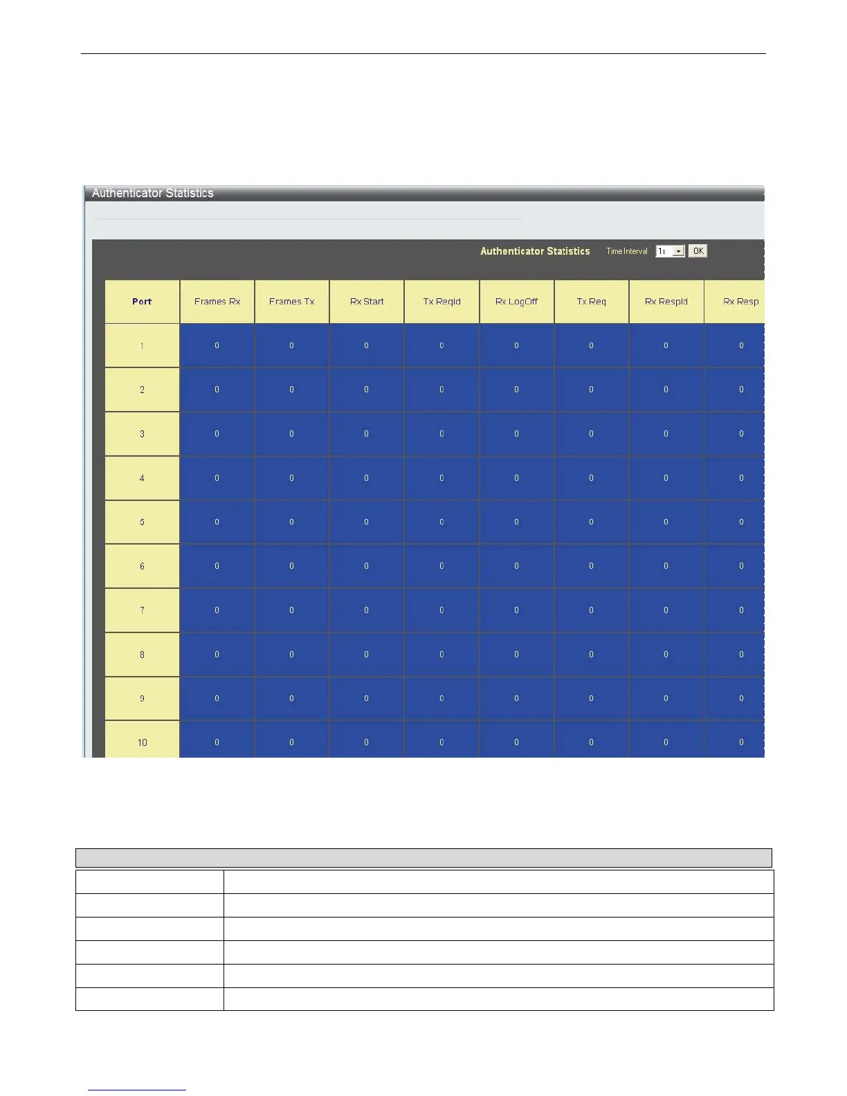 To view the following window, click Monitoring > Port Access Control > Authenticator Statistics:
