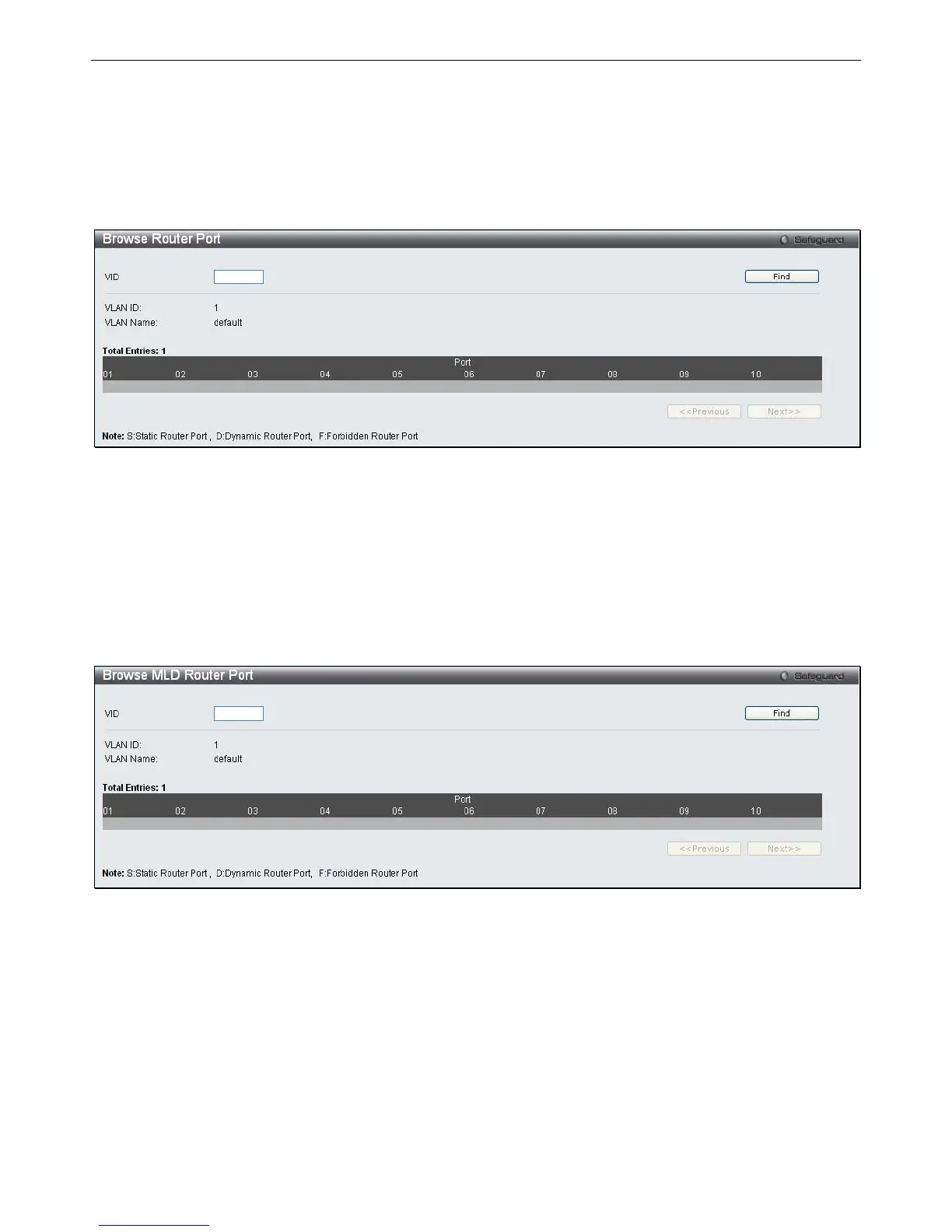 To view the following window, click Monitoring > Browse MLD Router Port: