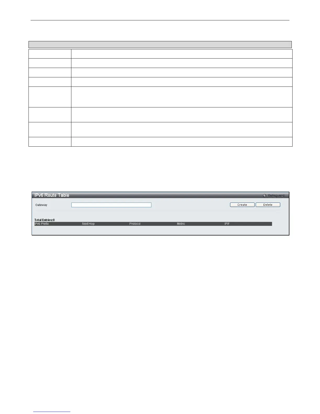 The user can configure the Switch’s IPv6 Route Table.