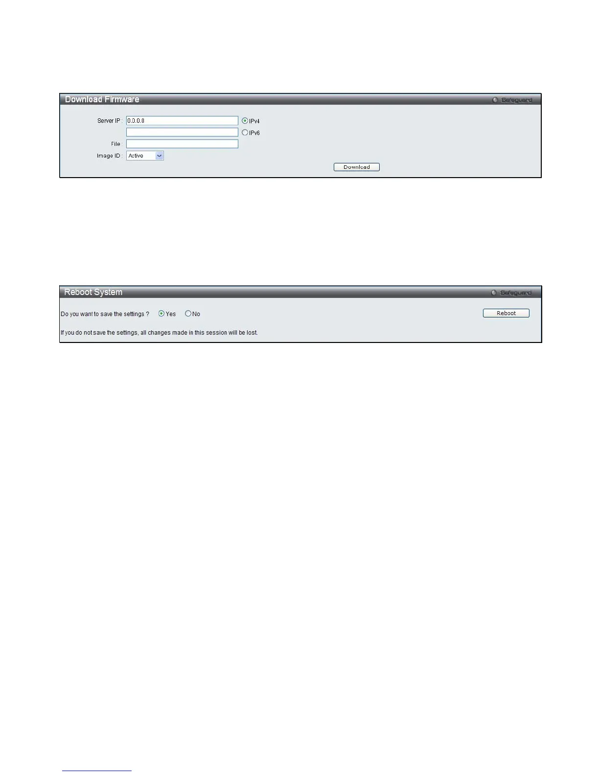 Clicking the No radio button instructs the Switch not to save the current configuration before restarting the Switch. All of the