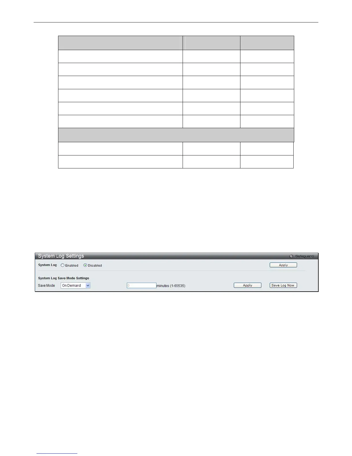To view the following window, click Configuration > System Log Configuration > System Log Settings: