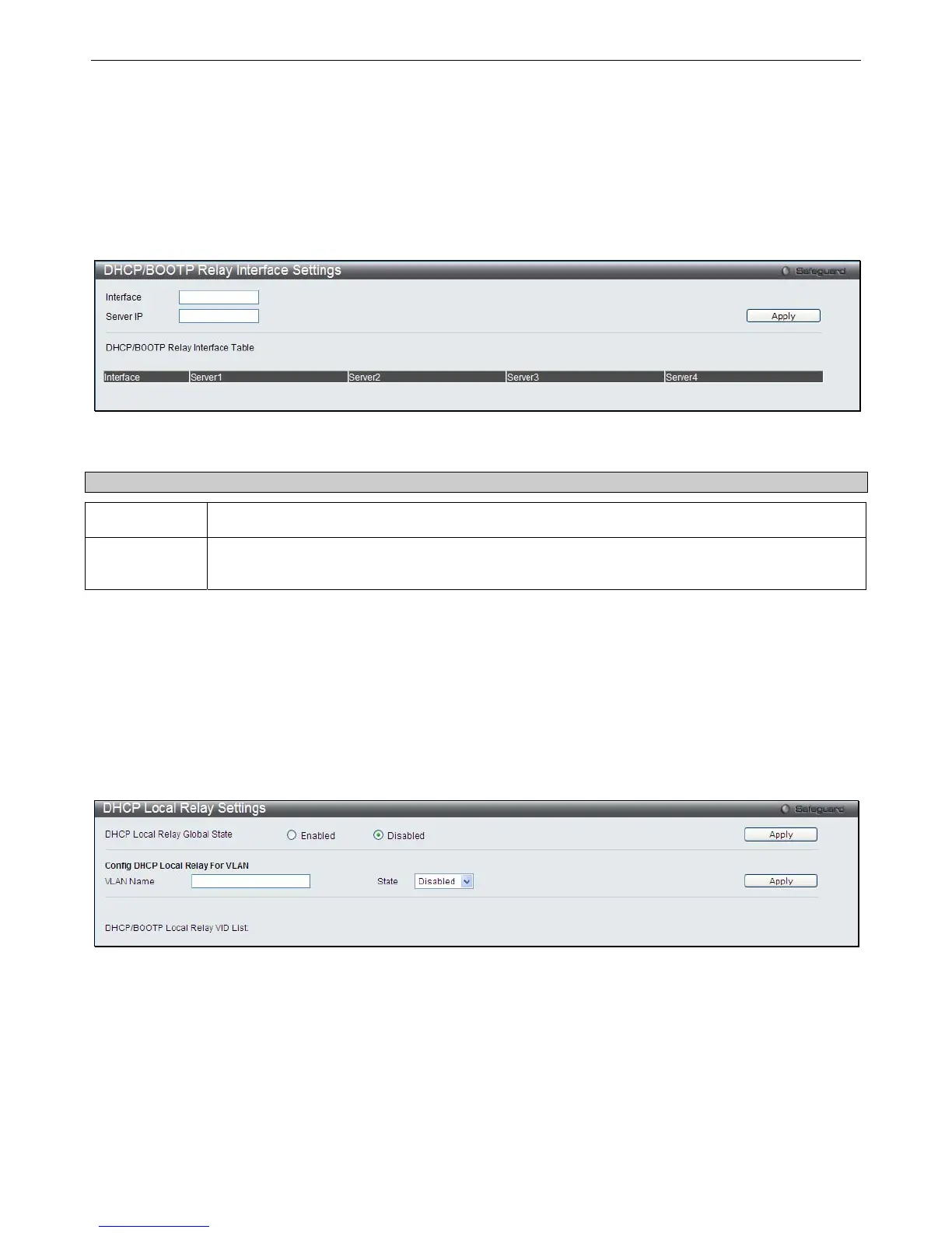 configured IP interface on the Switch that will be connected directly to the DHCP/BOOTP server using this window. Properly