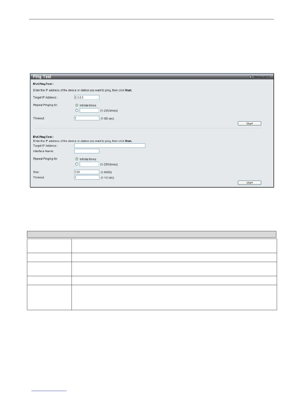 number of times to ping the Target IP Address by clicking its radio button and entering a number between 1 and 255. Click Start