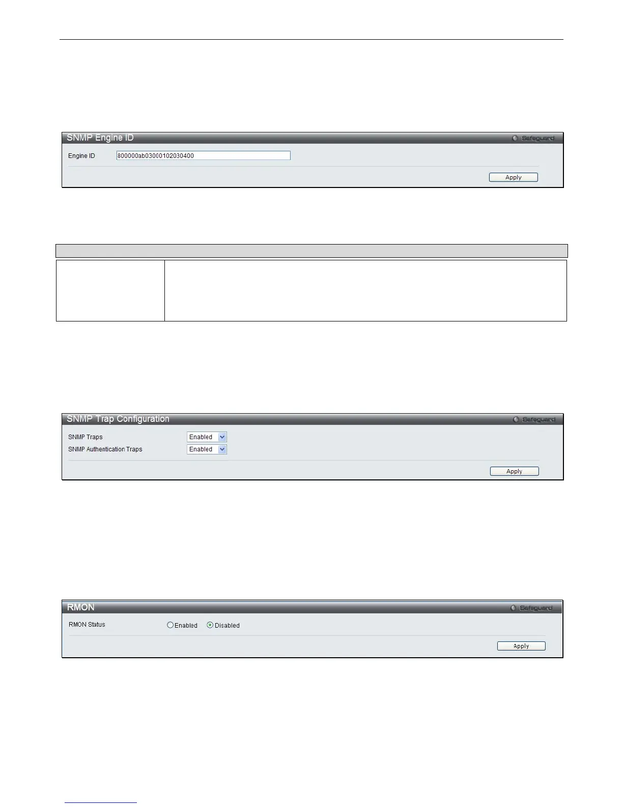 Users can enable and disable remote monitoring (RMON) status for the SNMP function on the Switch.