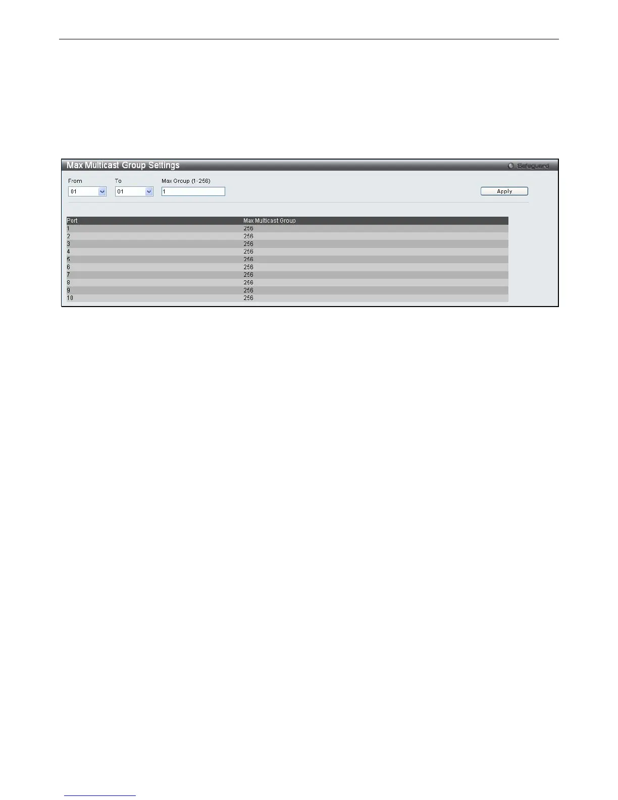 To add a Maximum Multicast Group range, enter the appropriate information and then click Apply.