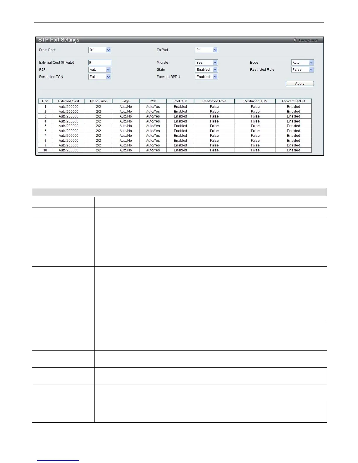 This drop-down menu allows you to enable or disable STP for the selected group of ports.