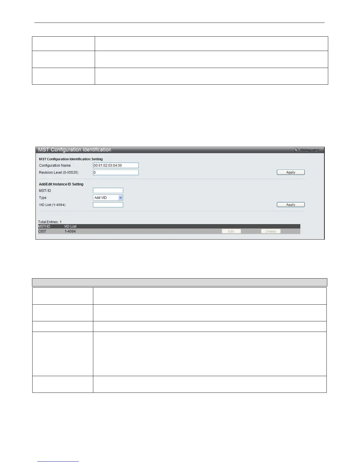 To view the following window, click L2 Features > Spanning Tree > MST Configuration Identification: