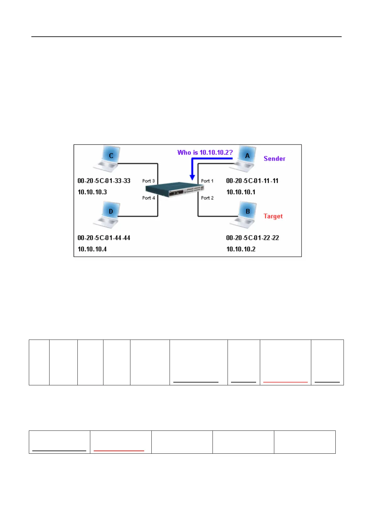 Address” in the Ethernet frame will be PC A’s MAC address. Since an ARP request is sent via broadcast, the