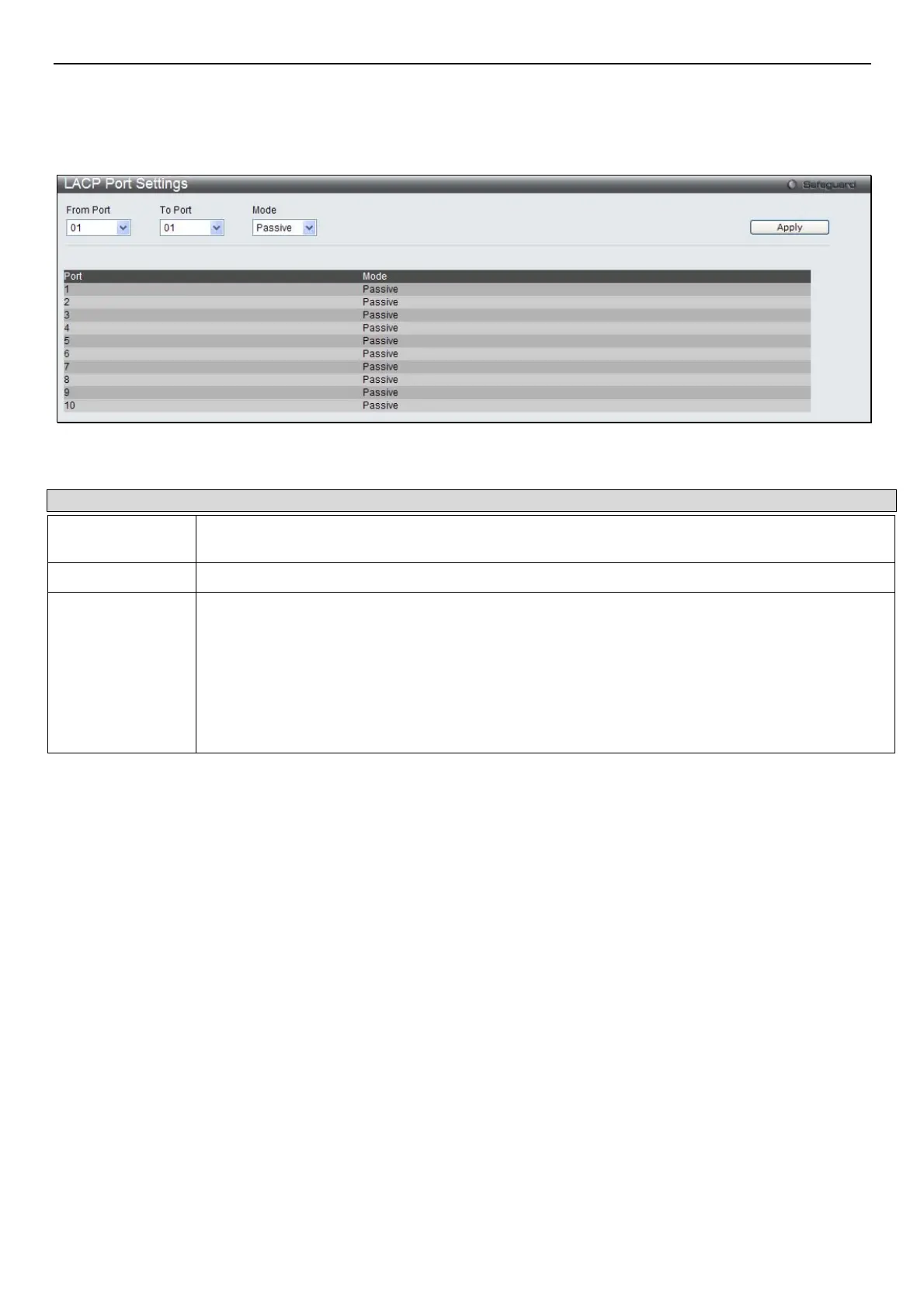 window, the user may set which ports will be active and passive in processing and sending LACP control frames.