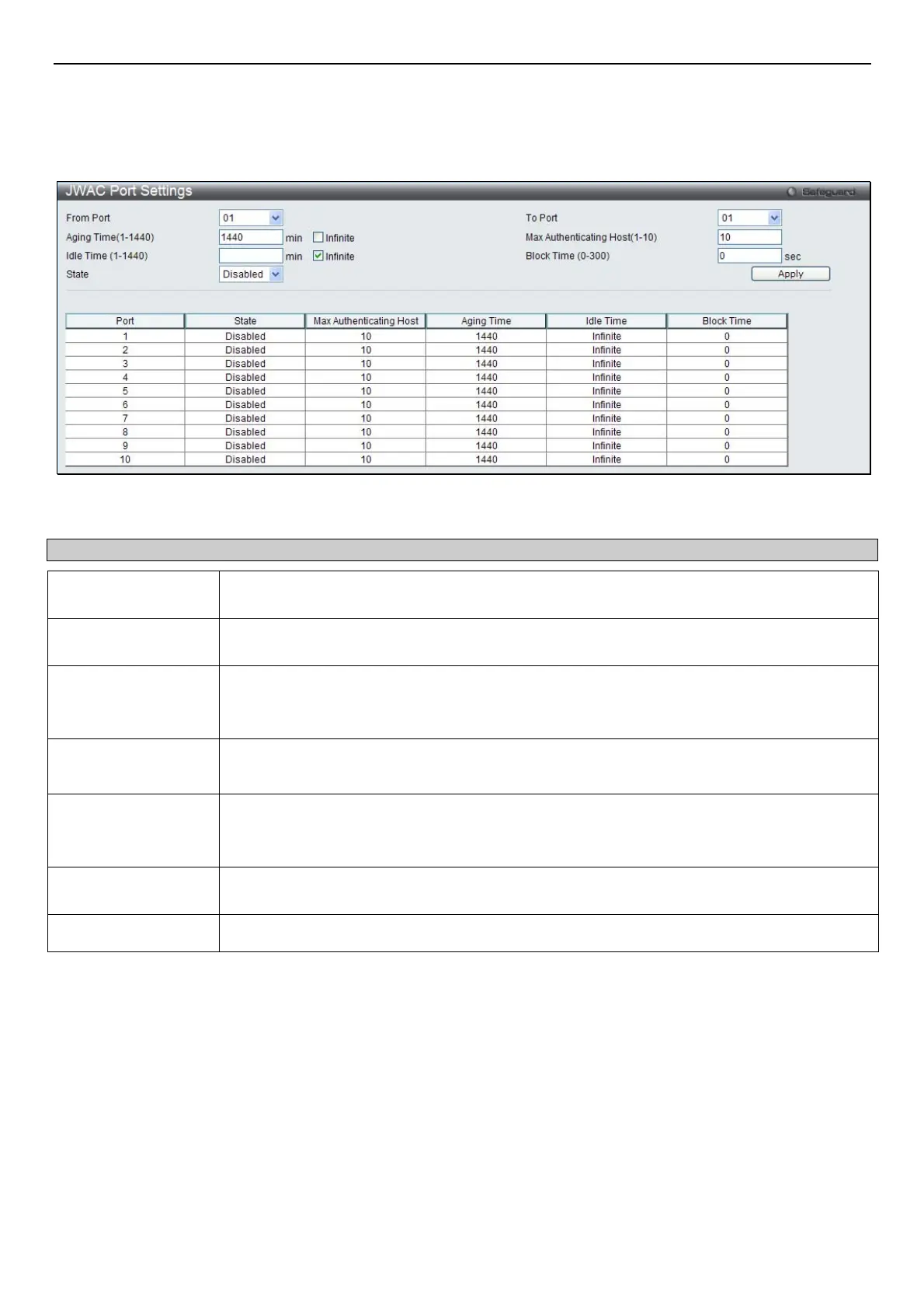 To set the JWAC on individual ports for the Switch, complete the following fields: