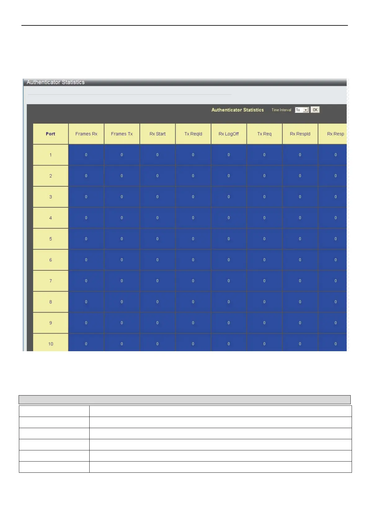 To view the Authenticator Statistics, click Monitoring > Port Access Control > Authenticator Statistics.