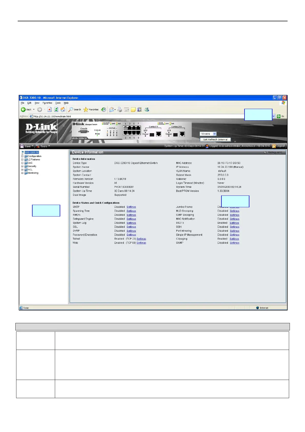 Some management functions, including port monitoring are accessible here. Click the D-Link logo to
